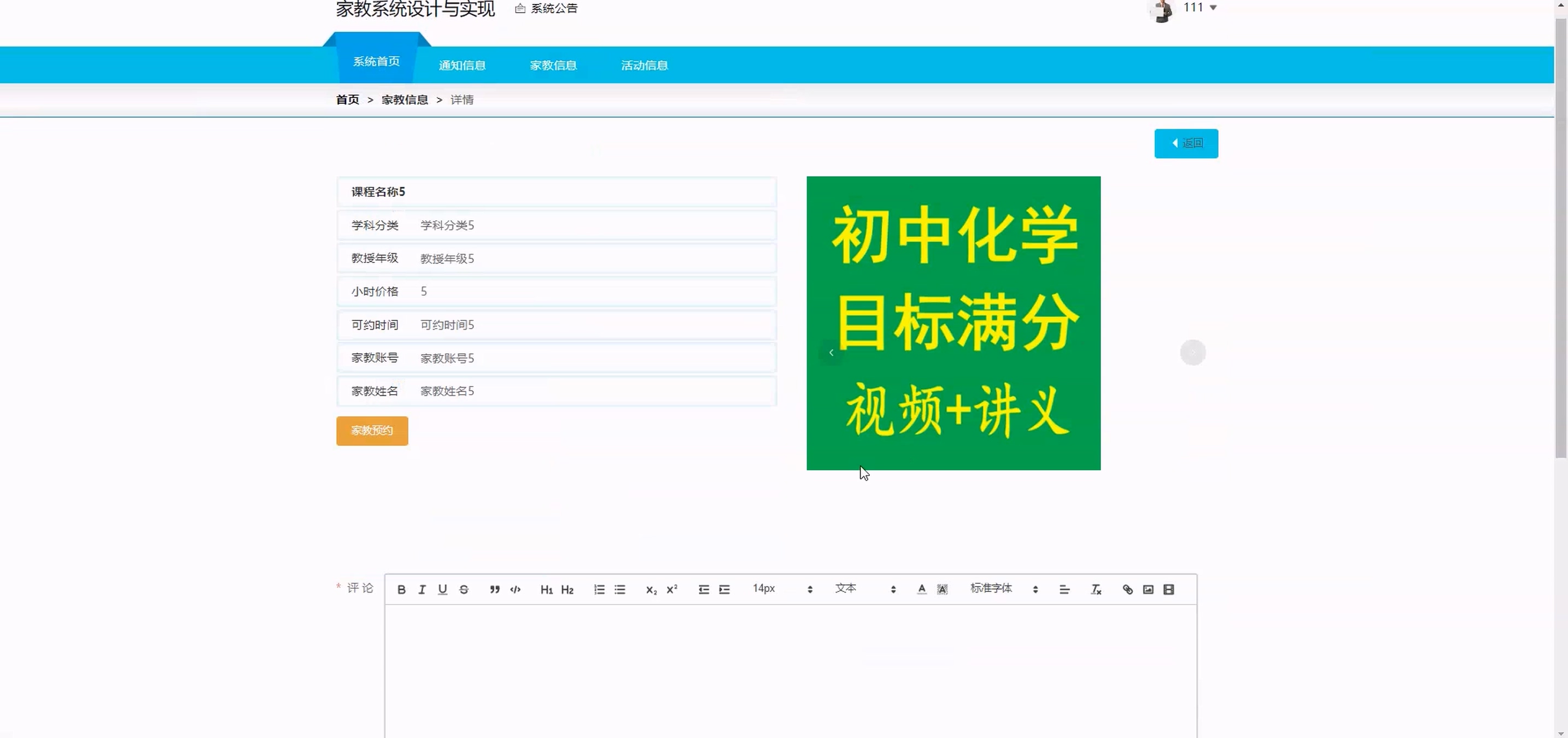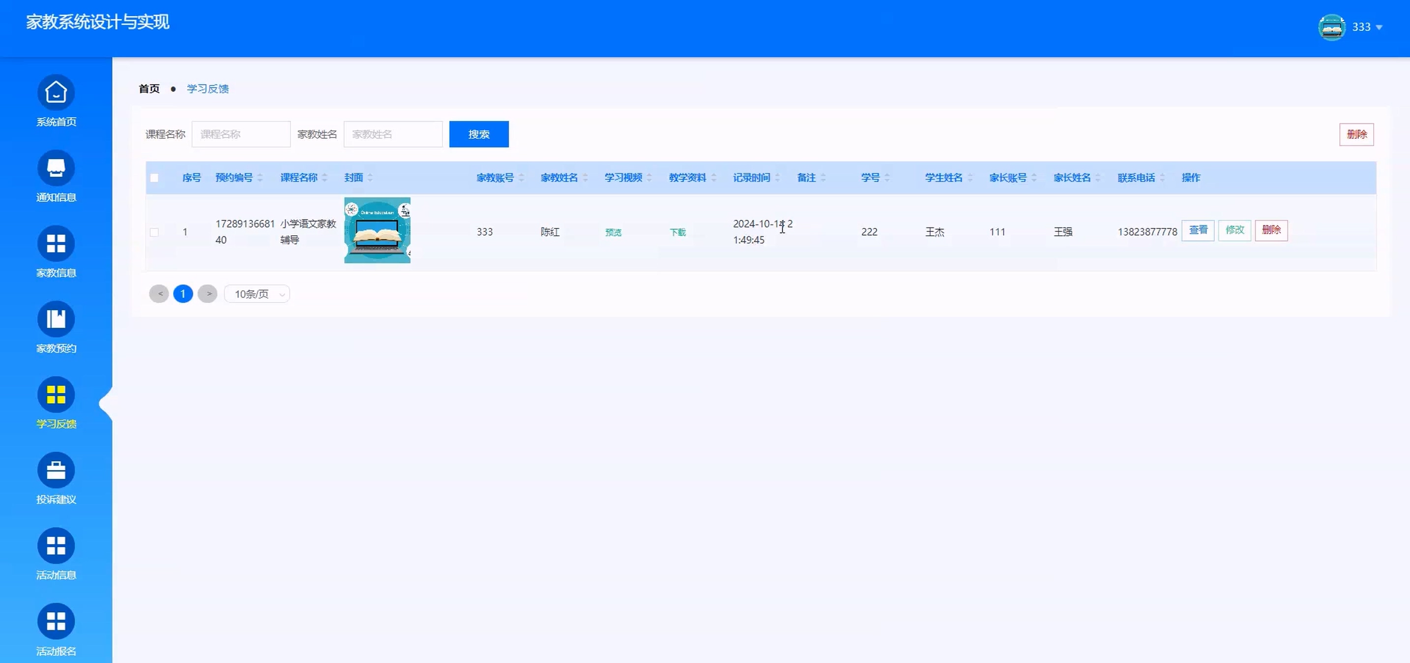 基于SpringBoot Vue家教管理系统