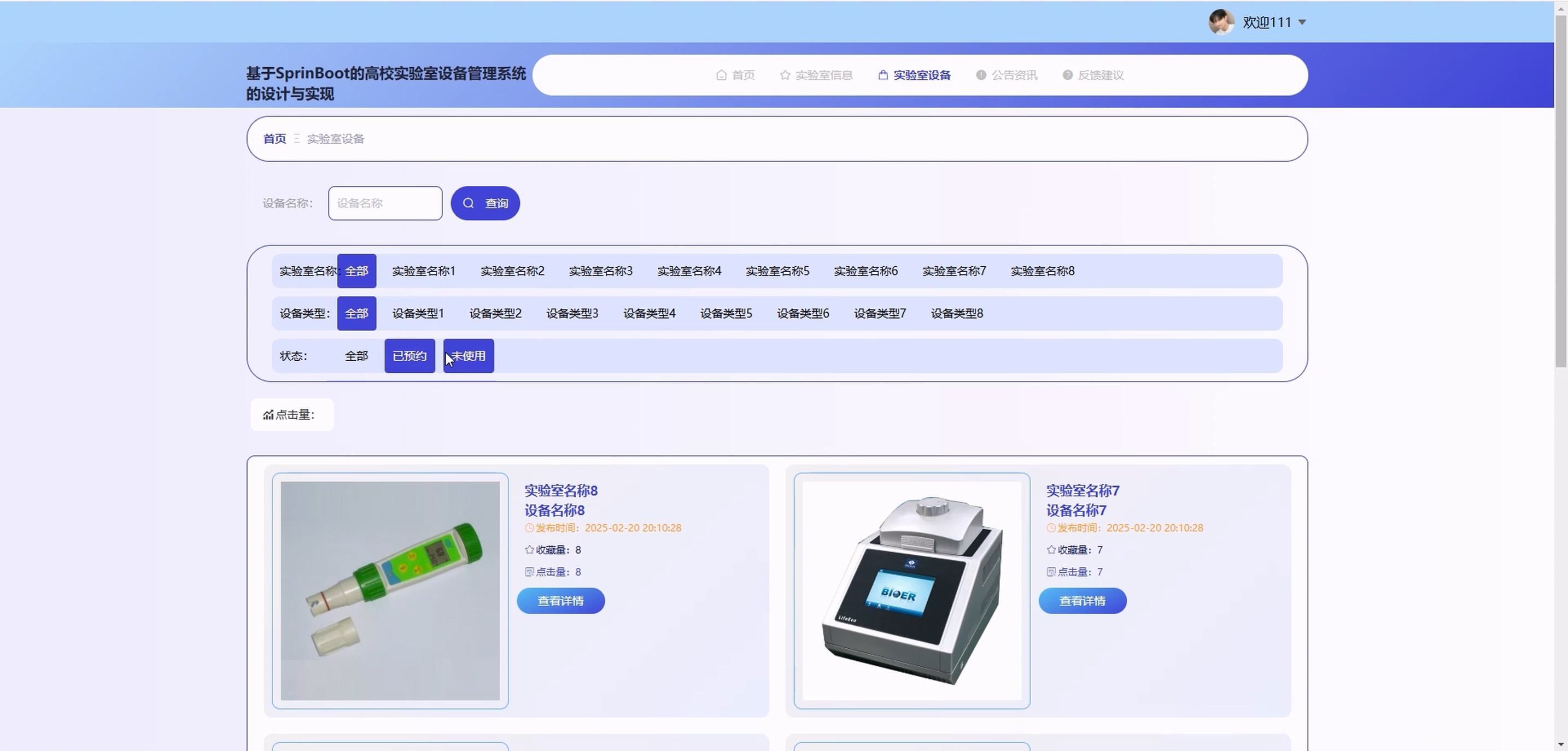 基于SpringBoot高校实验室设备管理系统