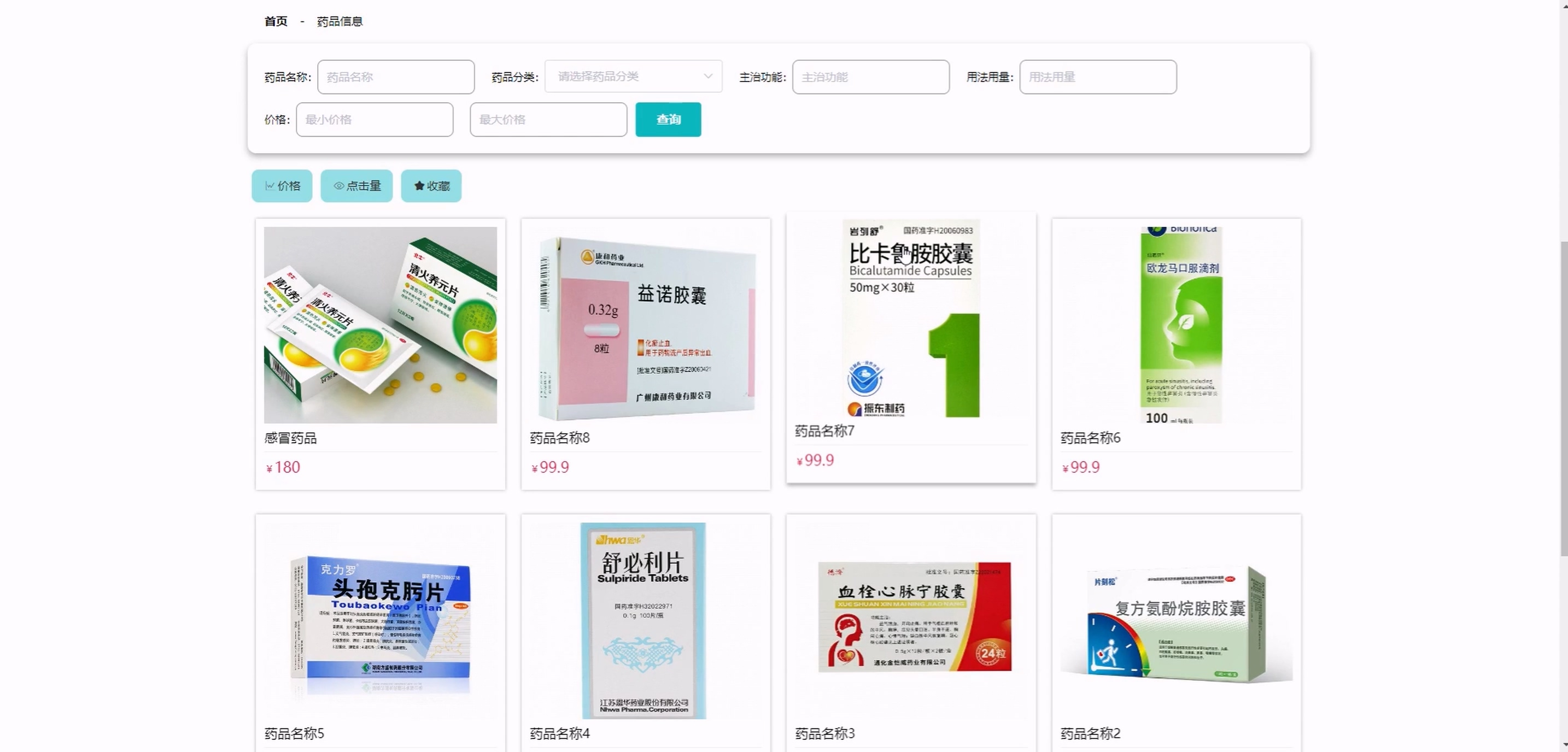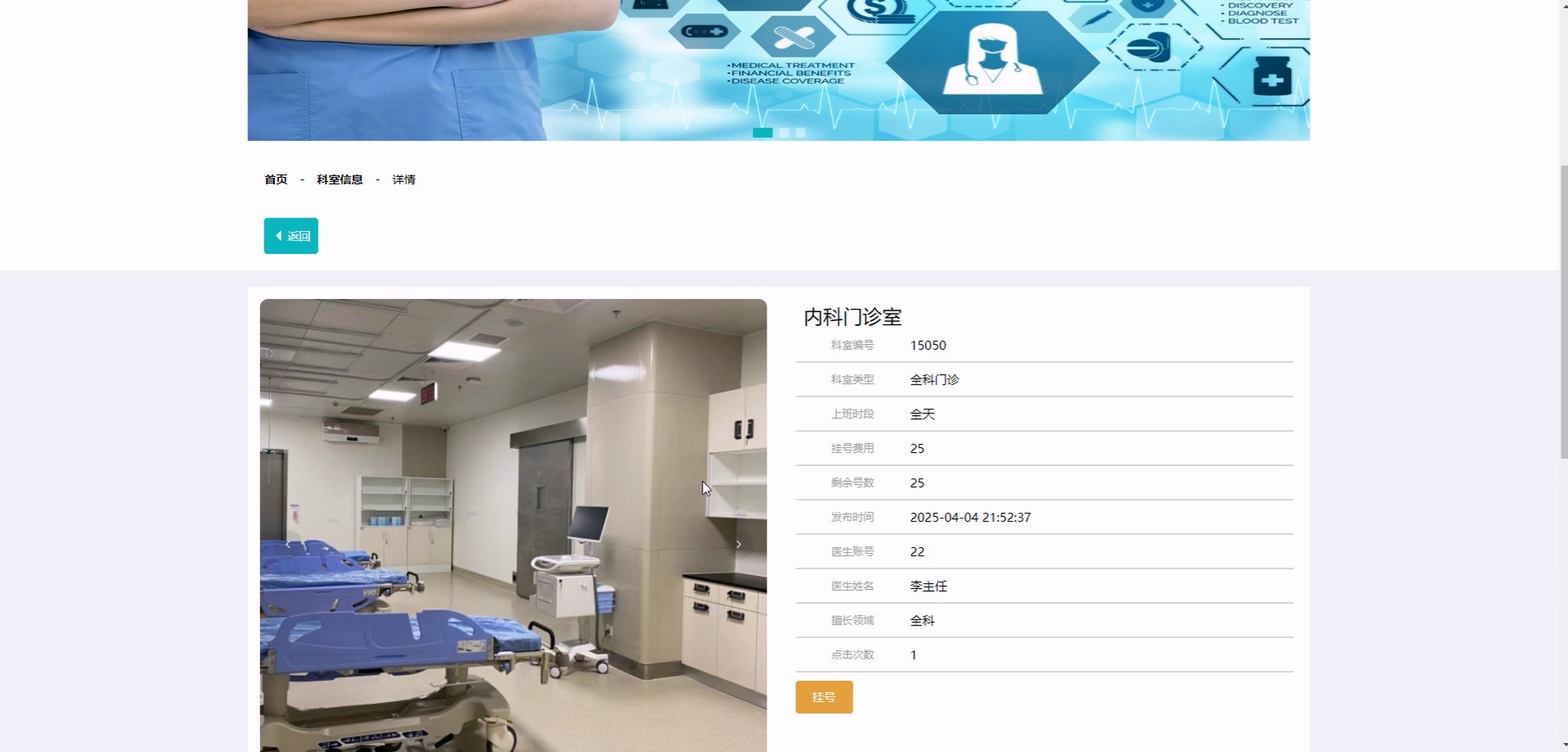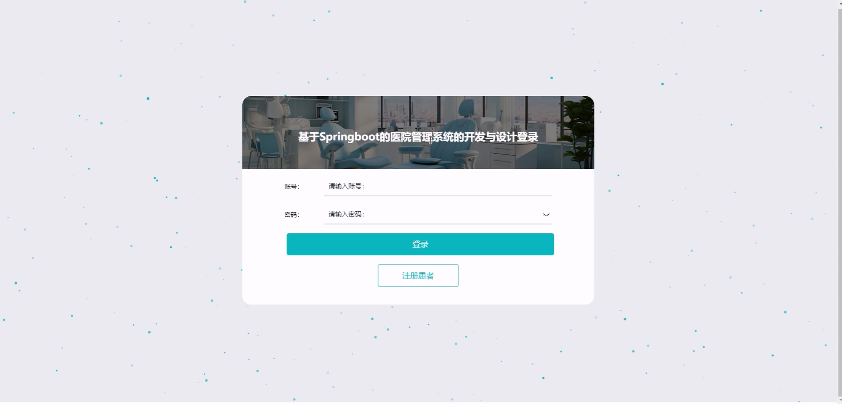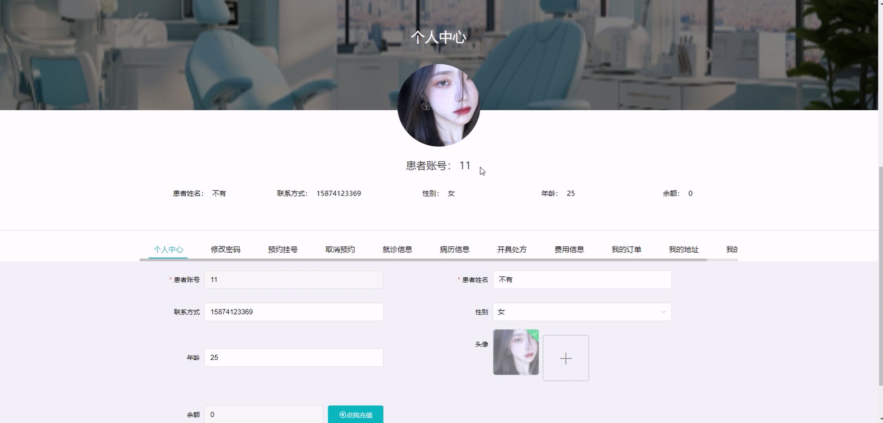(1) 前台患者:系统首页、科室信息、药品信息、医疗资讯、购物车、智能 AI 对话、个人中心(含修改密码、预约挂号、取消预约、就诊信息、病历信息、开具处方、费用信息、我的订单、我的地址、我的收藏)