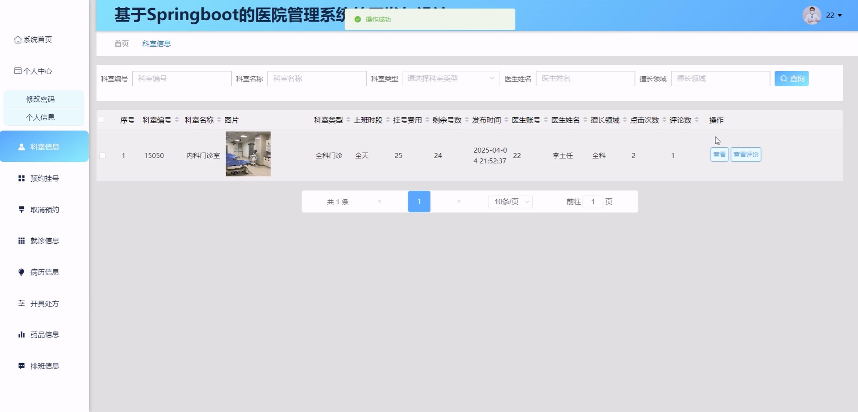 (协同过滤推荐算法+AI智能助手)基于SpringBoot的医院管理系统分为前台患者及后台模块(管理员、医生),具体功能如下: