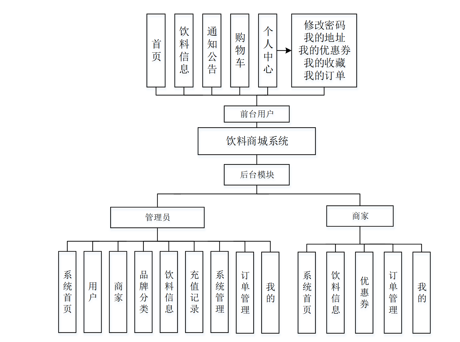 (协同过滤推荐算法+AI智能助手)基于SpringBoot的饮料商城系统清晰划分了系统的角色与功能模块,整体分为 “前台用户” 和 “后台模块” 两大板块: