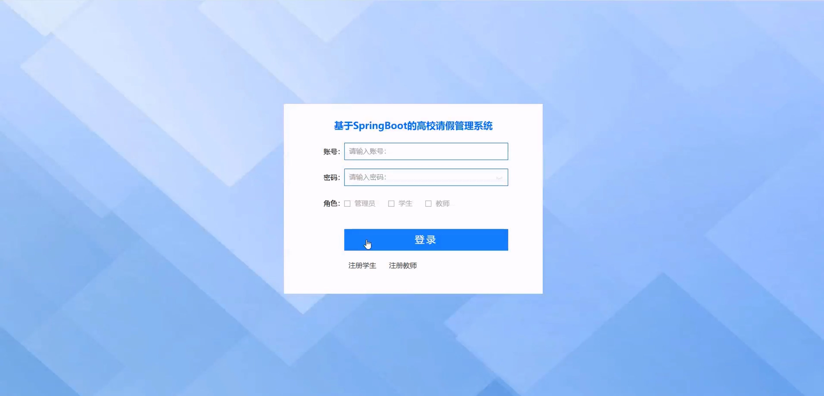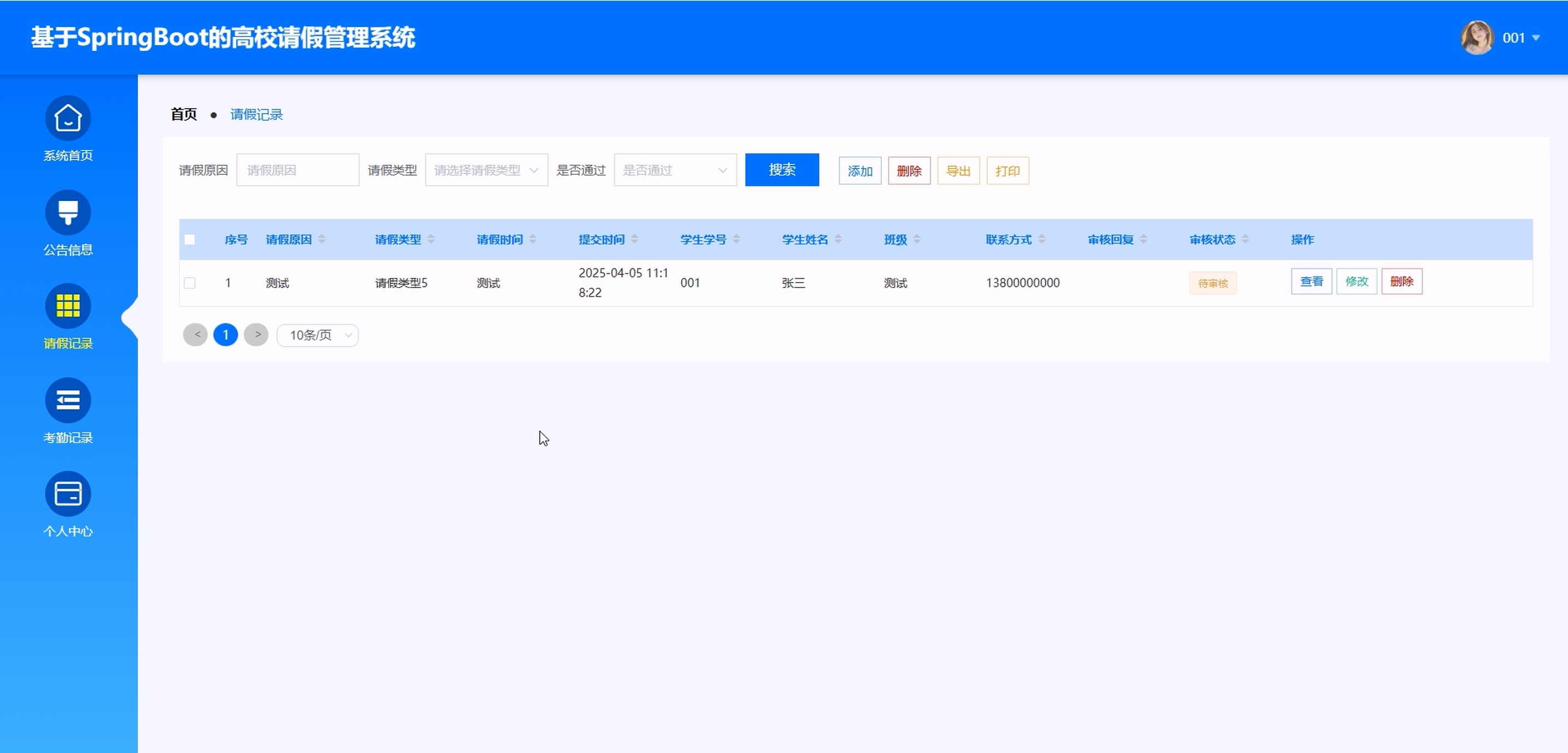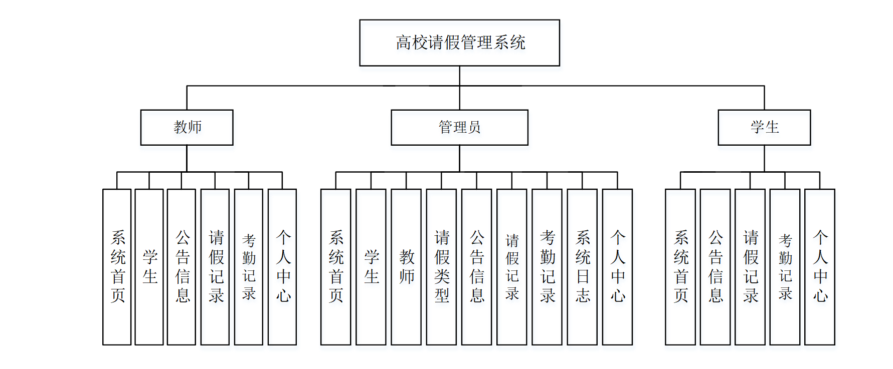 基于SpringBoot的高校请假管理系统包含教师、管理员、学生三个模块,具体功能如下: