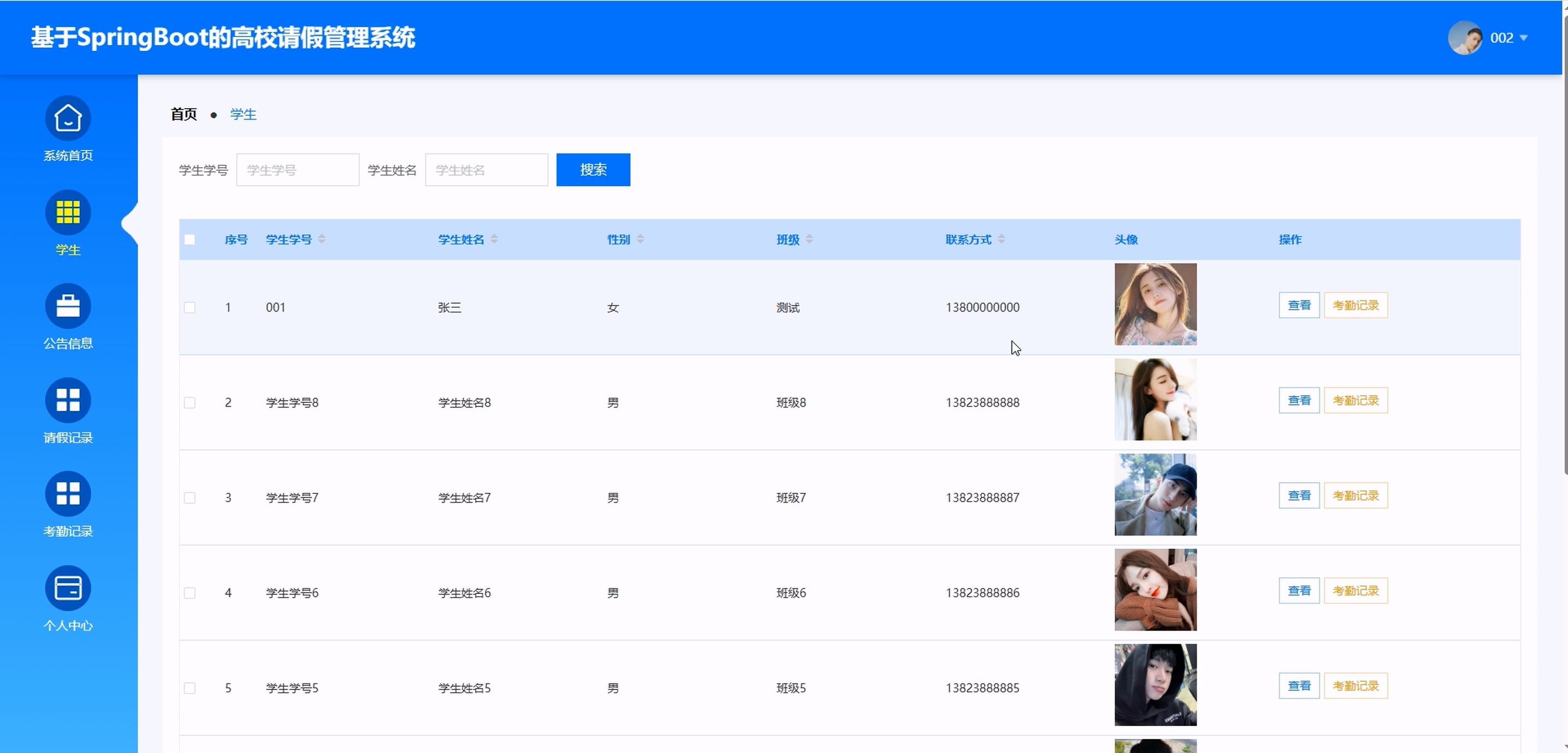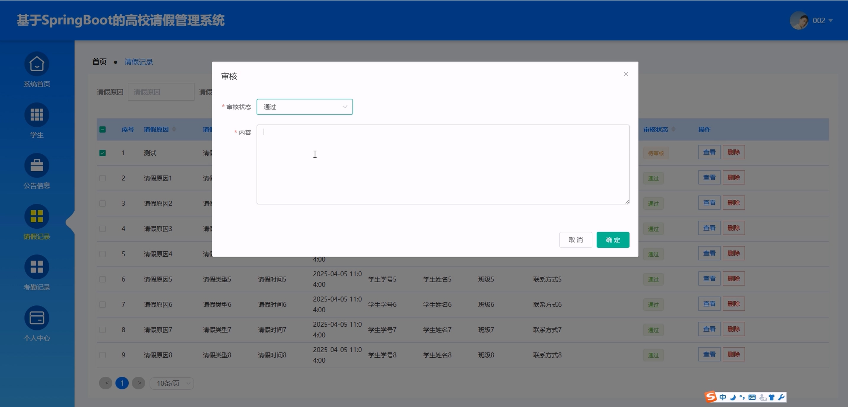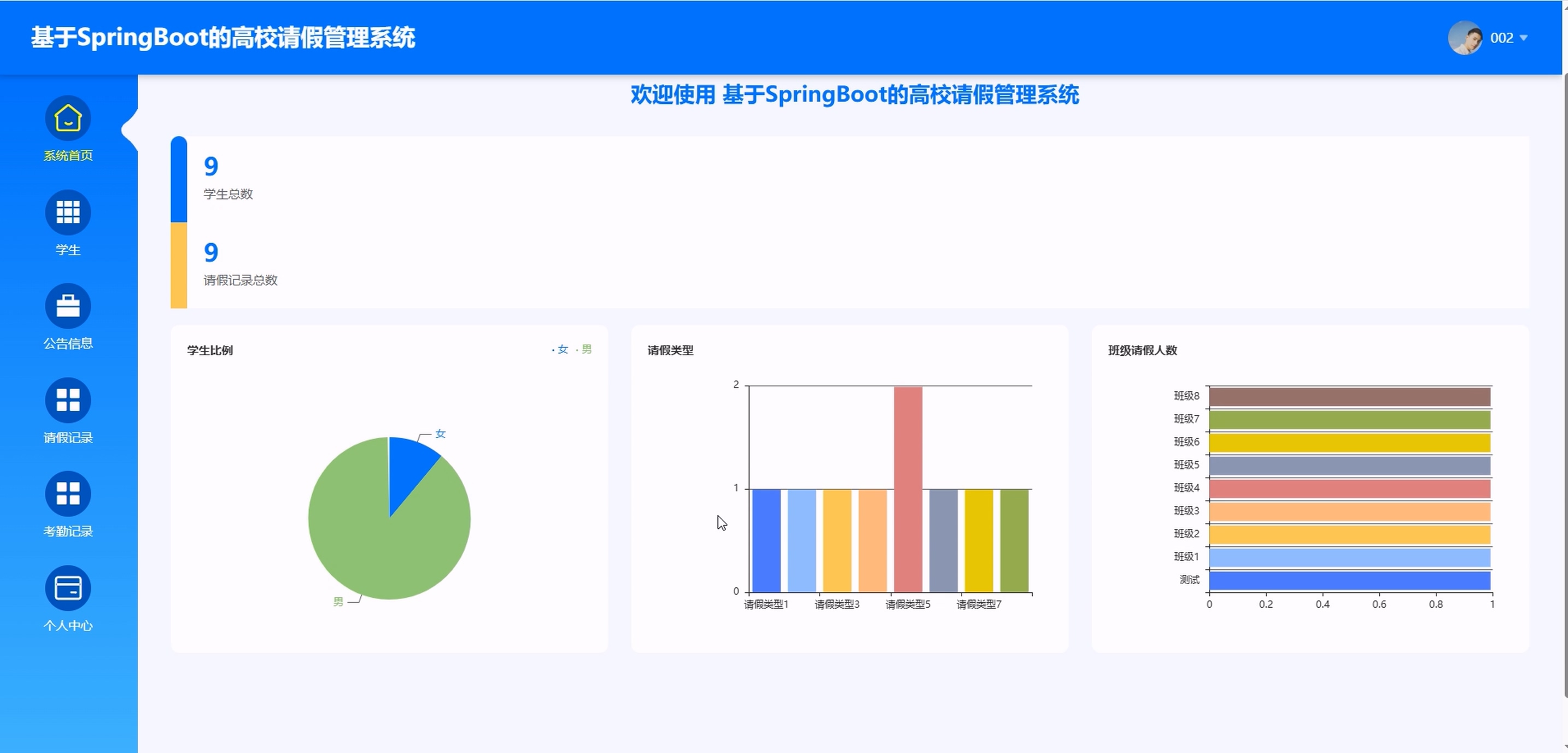 基于SpringBoot的高校请假管理系统包含教师、管理员、学生三个模块,具体功能如下: