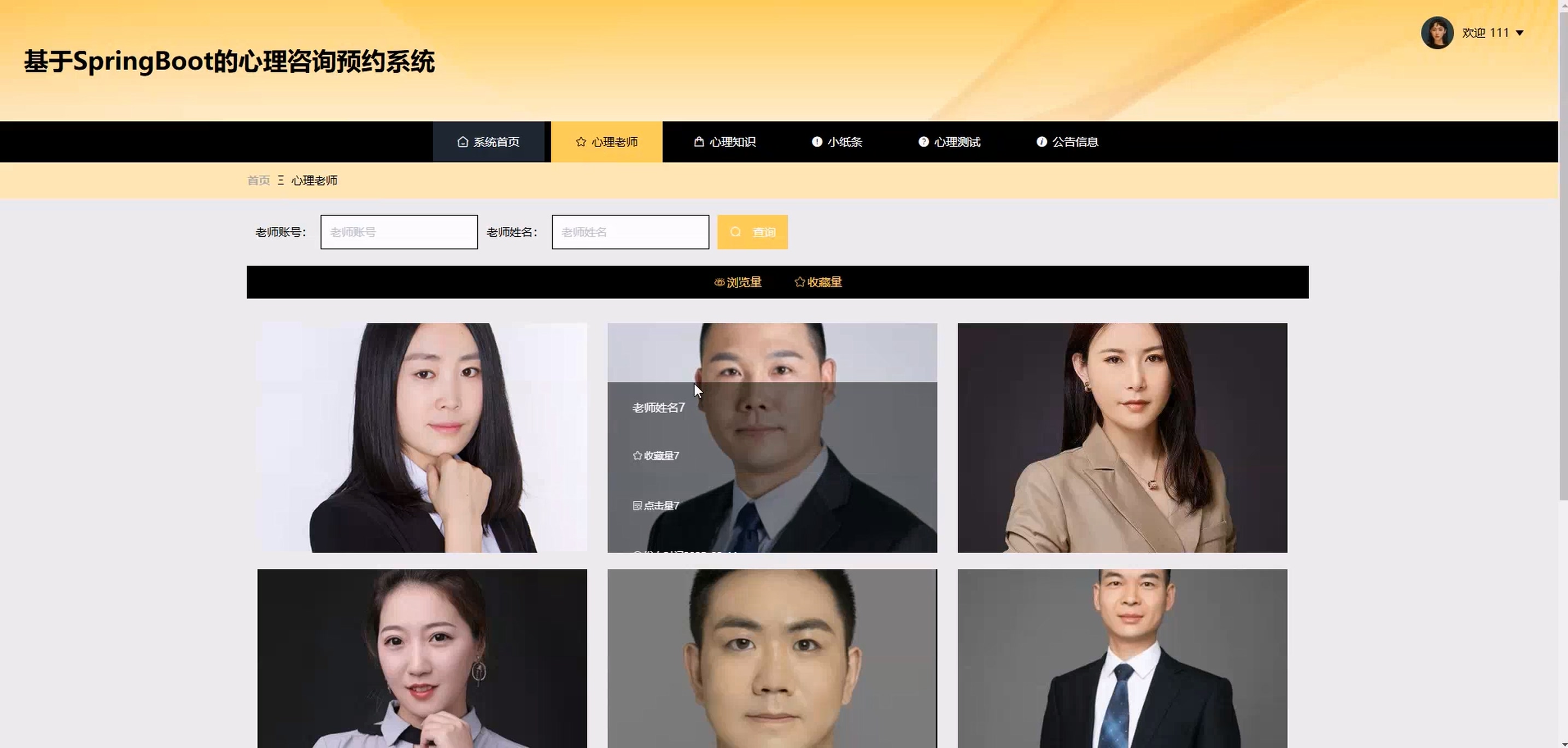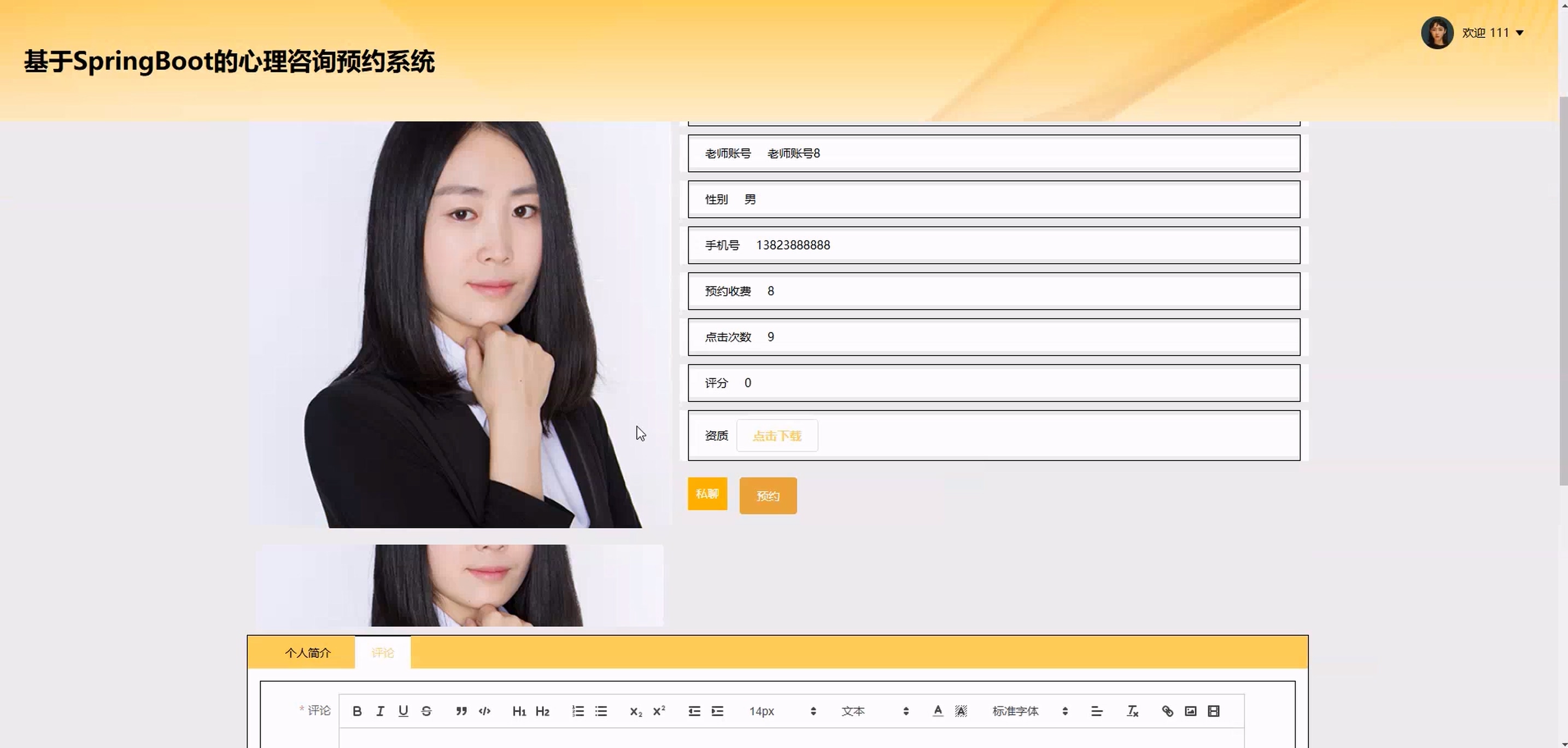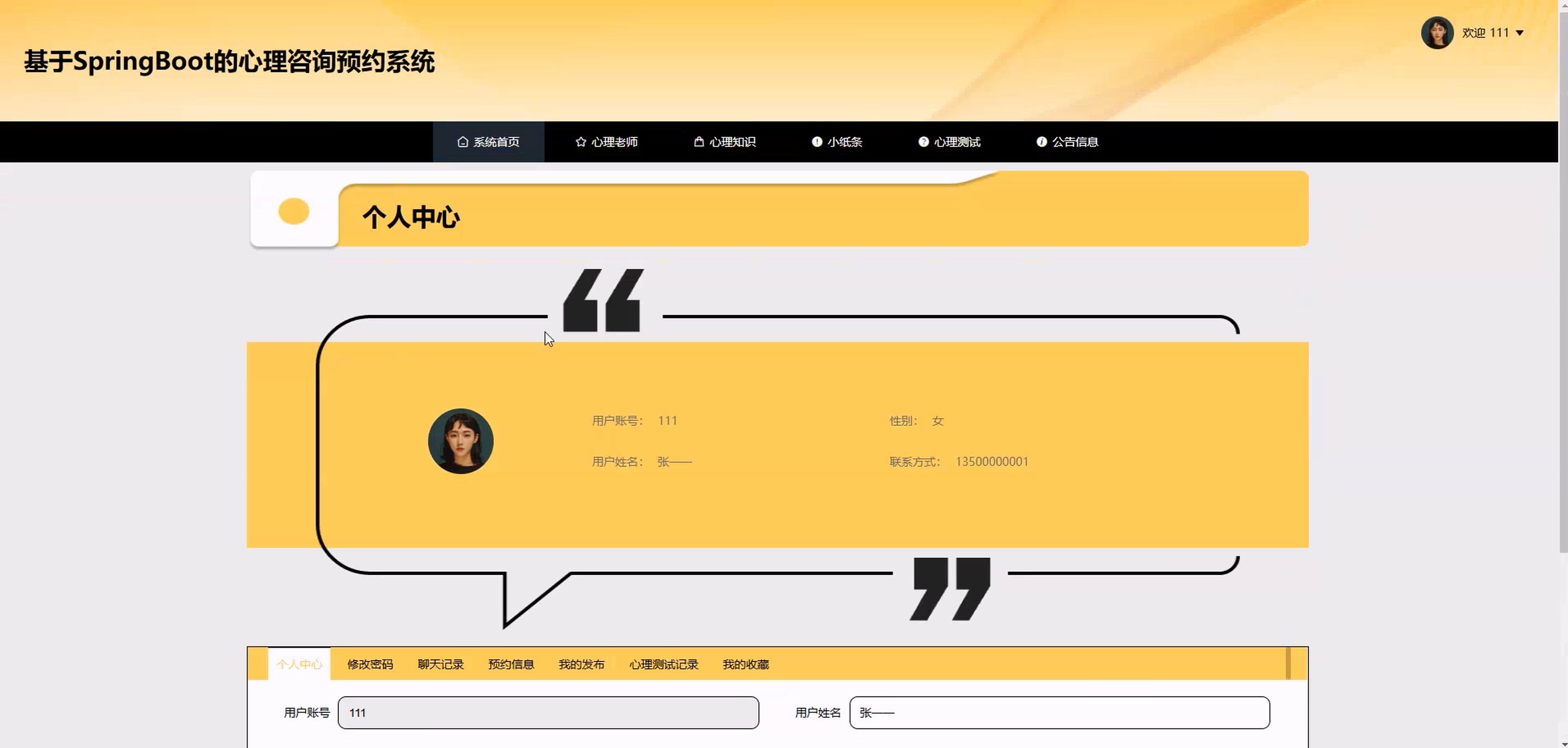 (协同过滤推荐算法)基于SpringBoot心理咨询预约系统分为前台用户及后台模块(管理员、心理老师),具体功能如下: