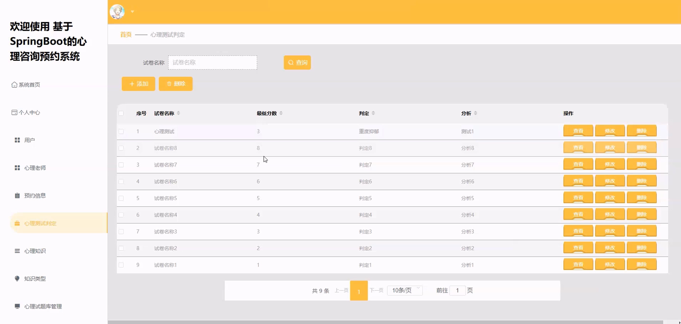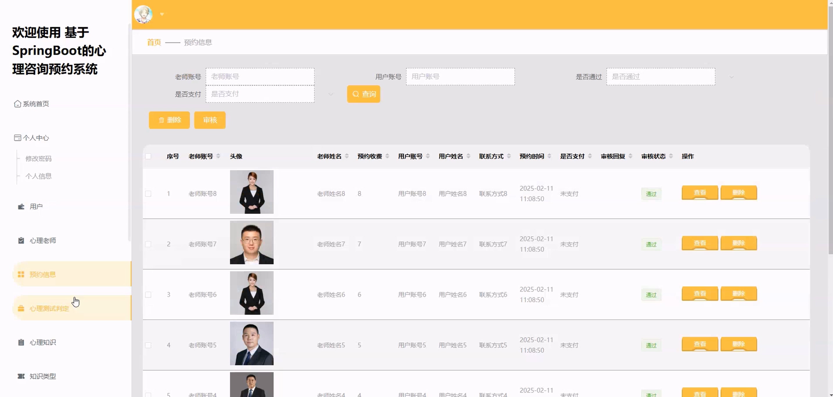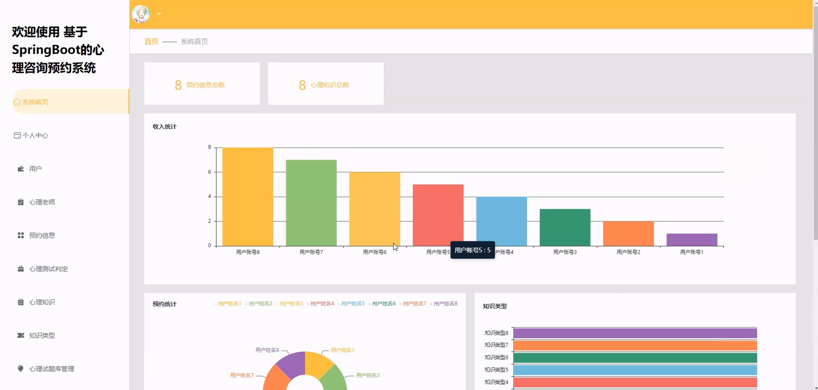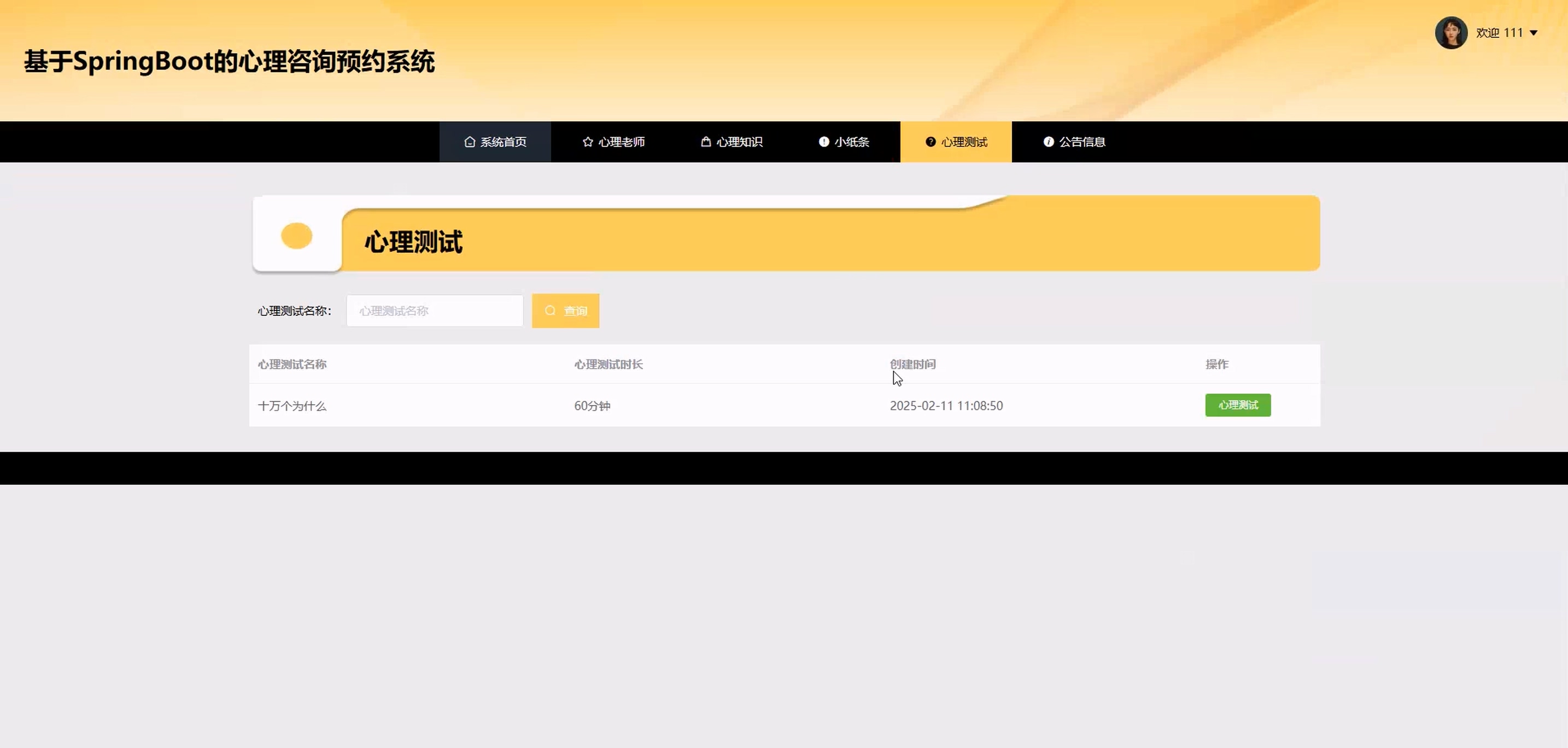 (协同过滤推荐算法)基于SpringBoot心理咨询预约系统分为前台用户及后台模块(管理员、心理老师),具体功能如下: