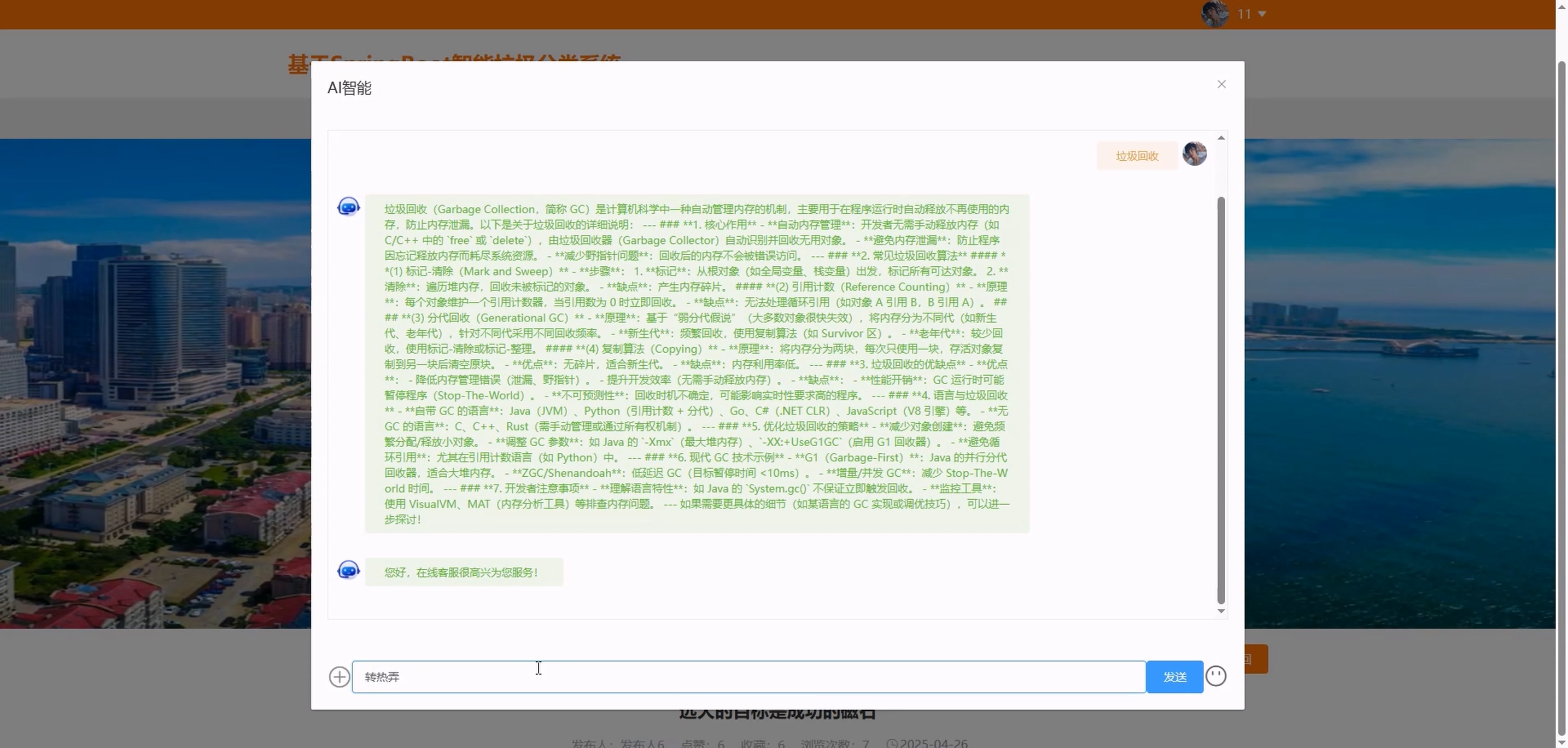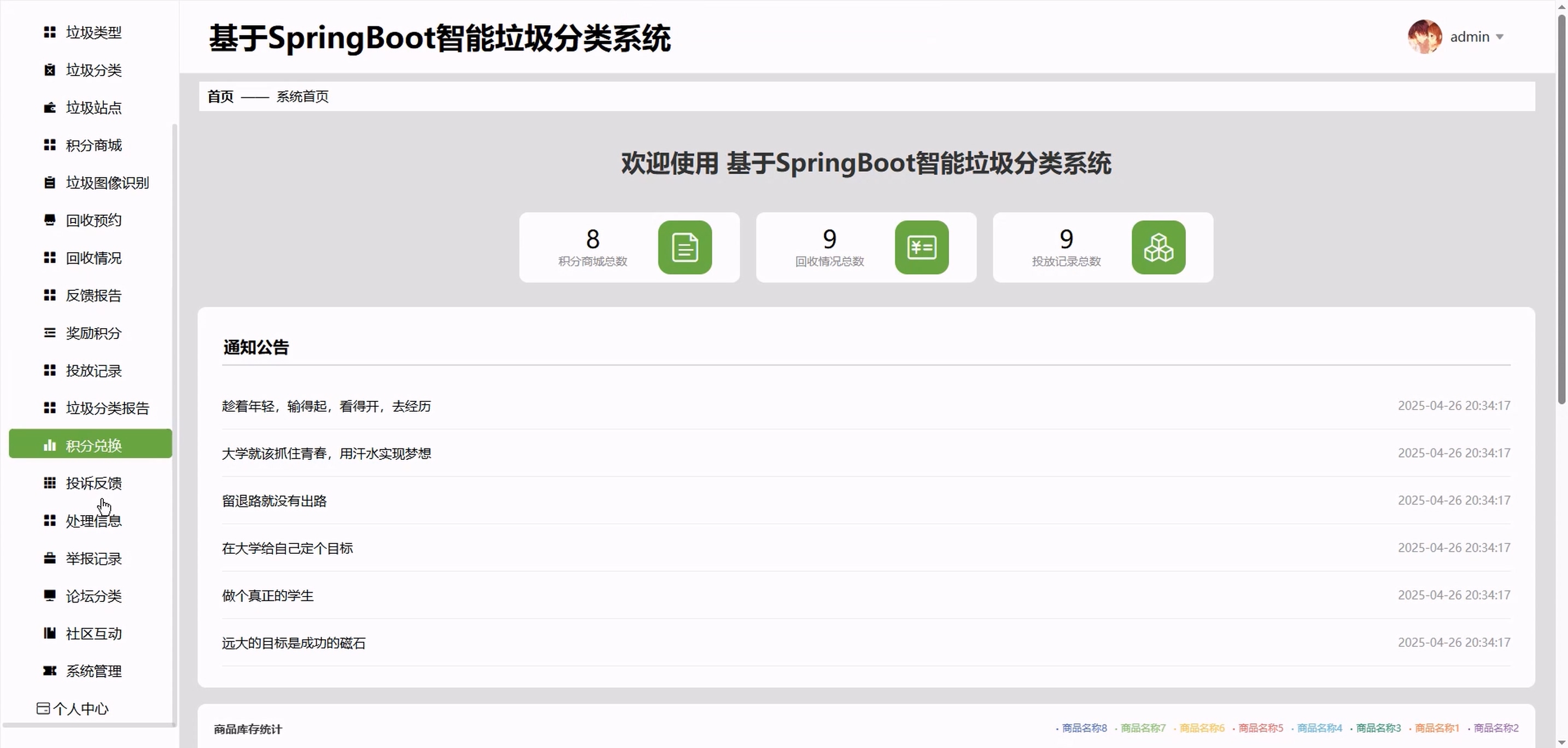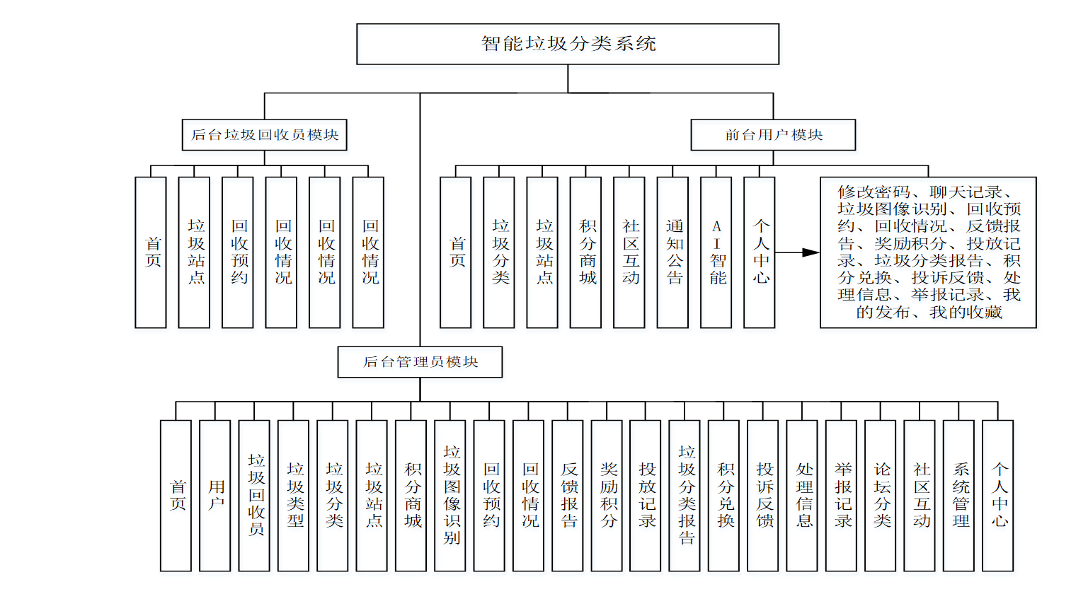 (协同过滤推荐算法+AI智能助手)基于SpringBoot的智能垃圾分类系统分为前台用户模块及后台模块(回收员、管理员),具体功能如下: