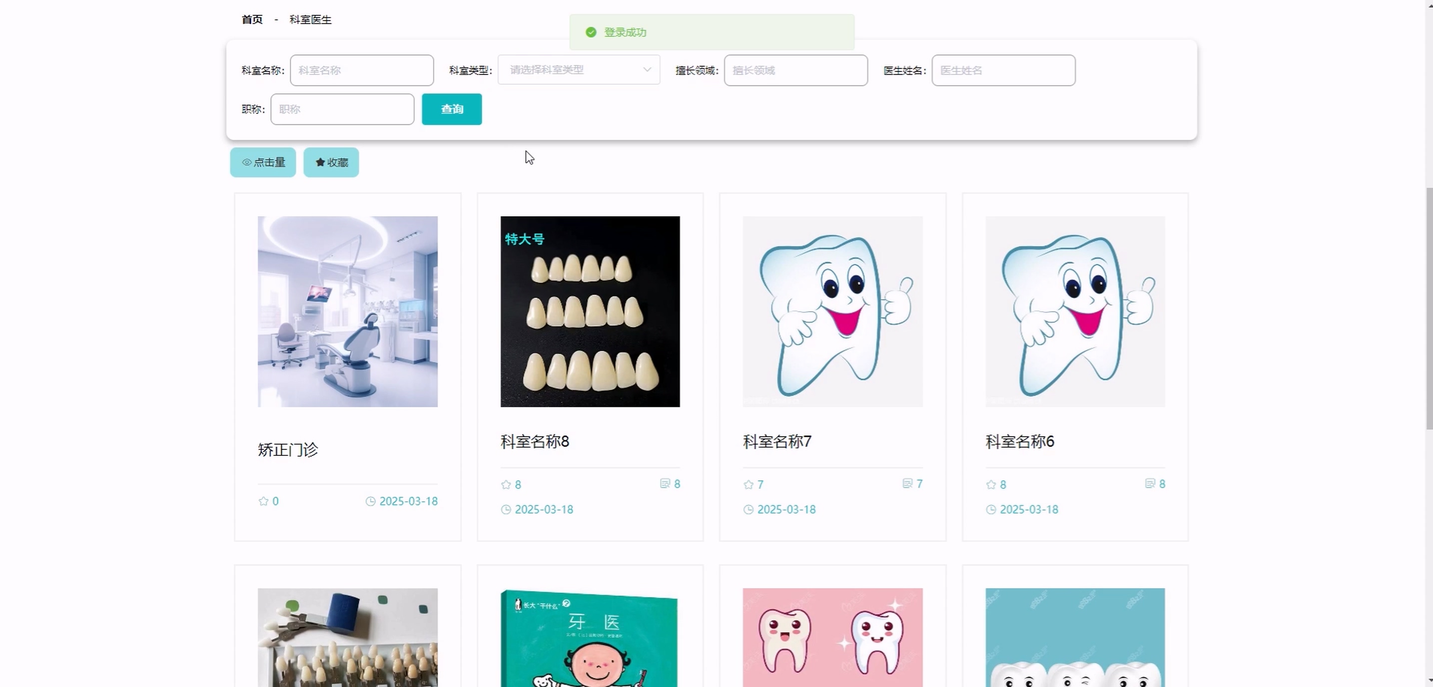 (协同过滤推荐算法+AI智能助手)基于SpringBoot的牙科医院预约挂号平台分为前台用户及后台模块(管理员、医生),具体功能如下: