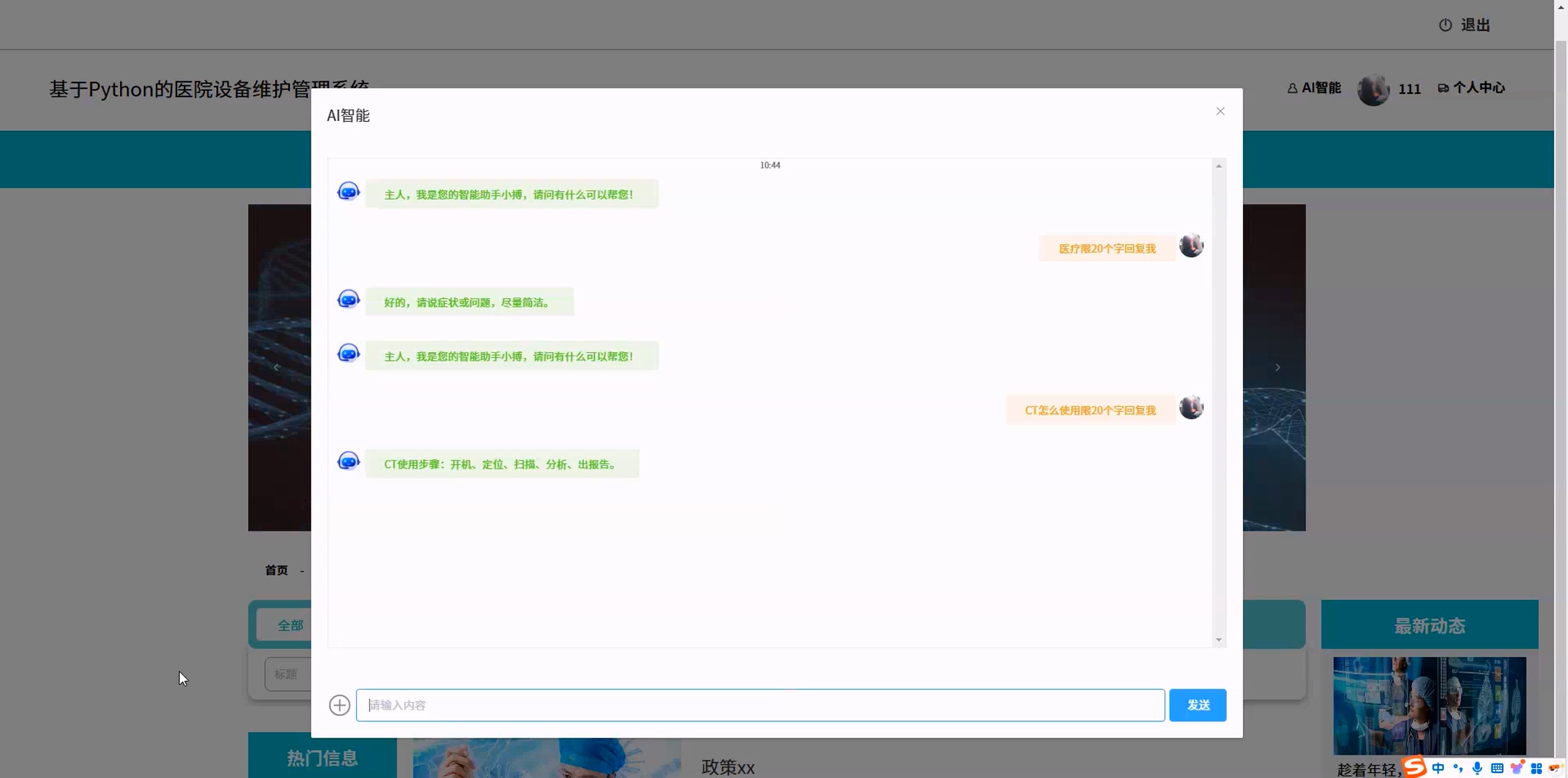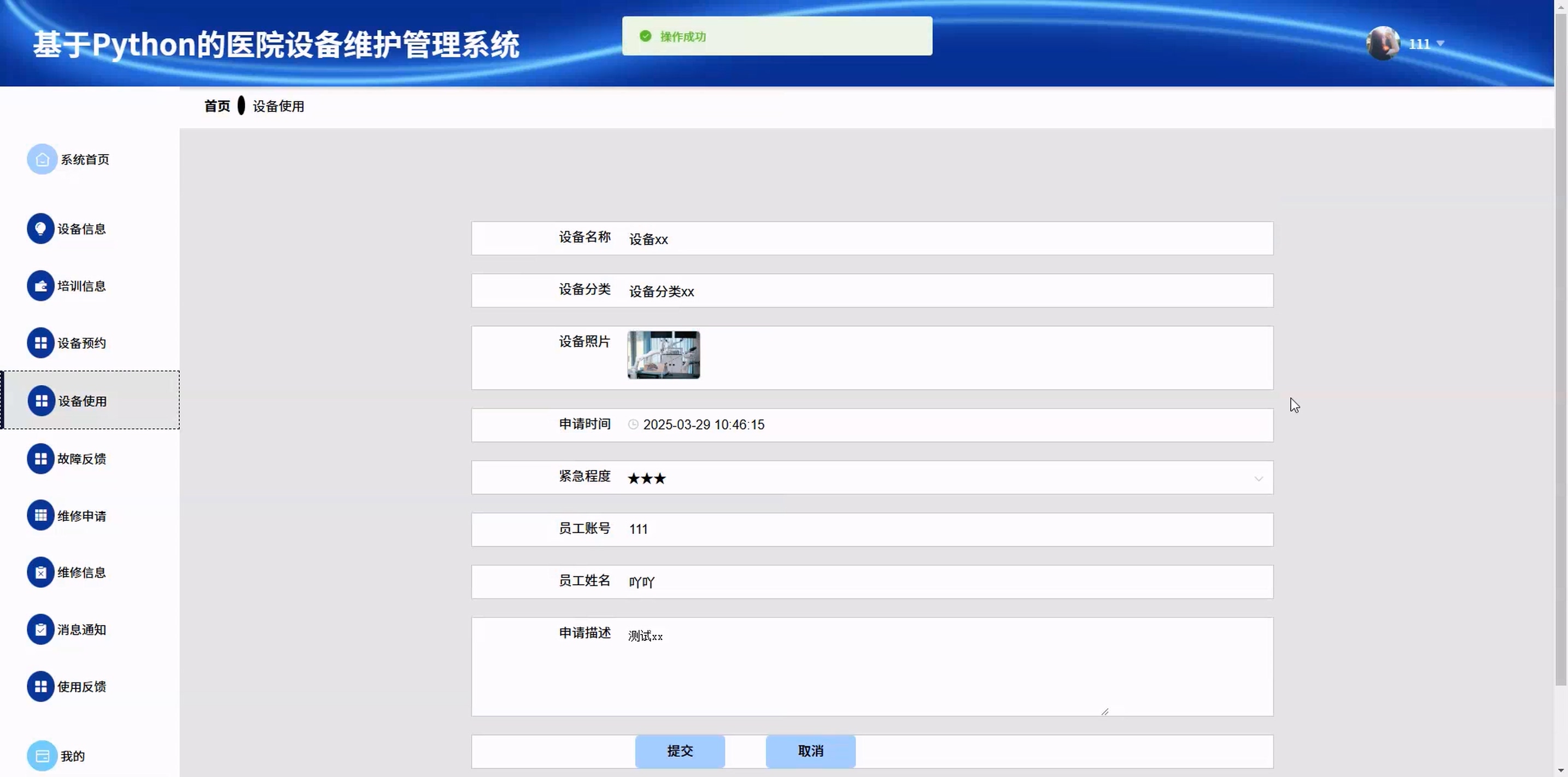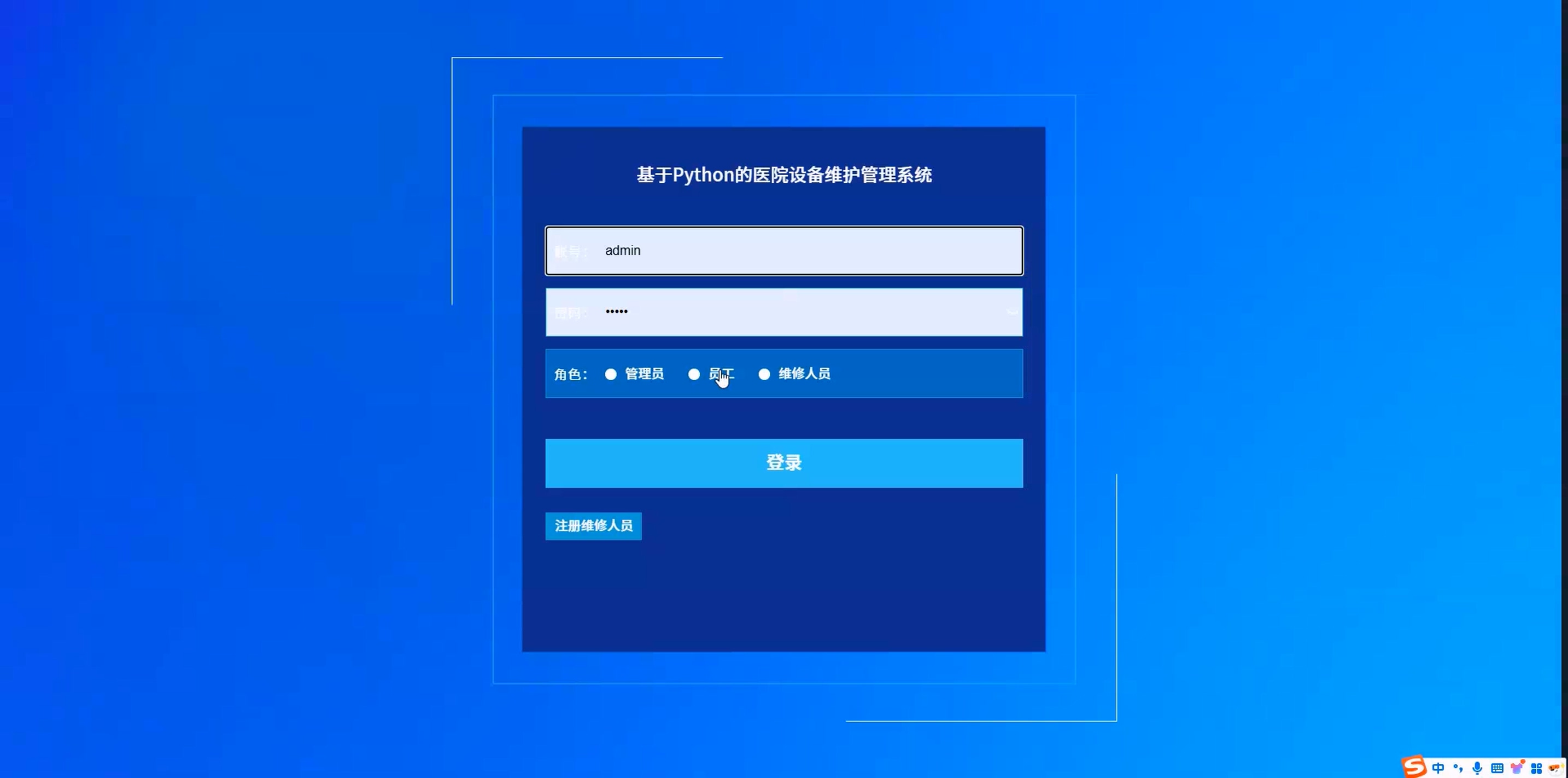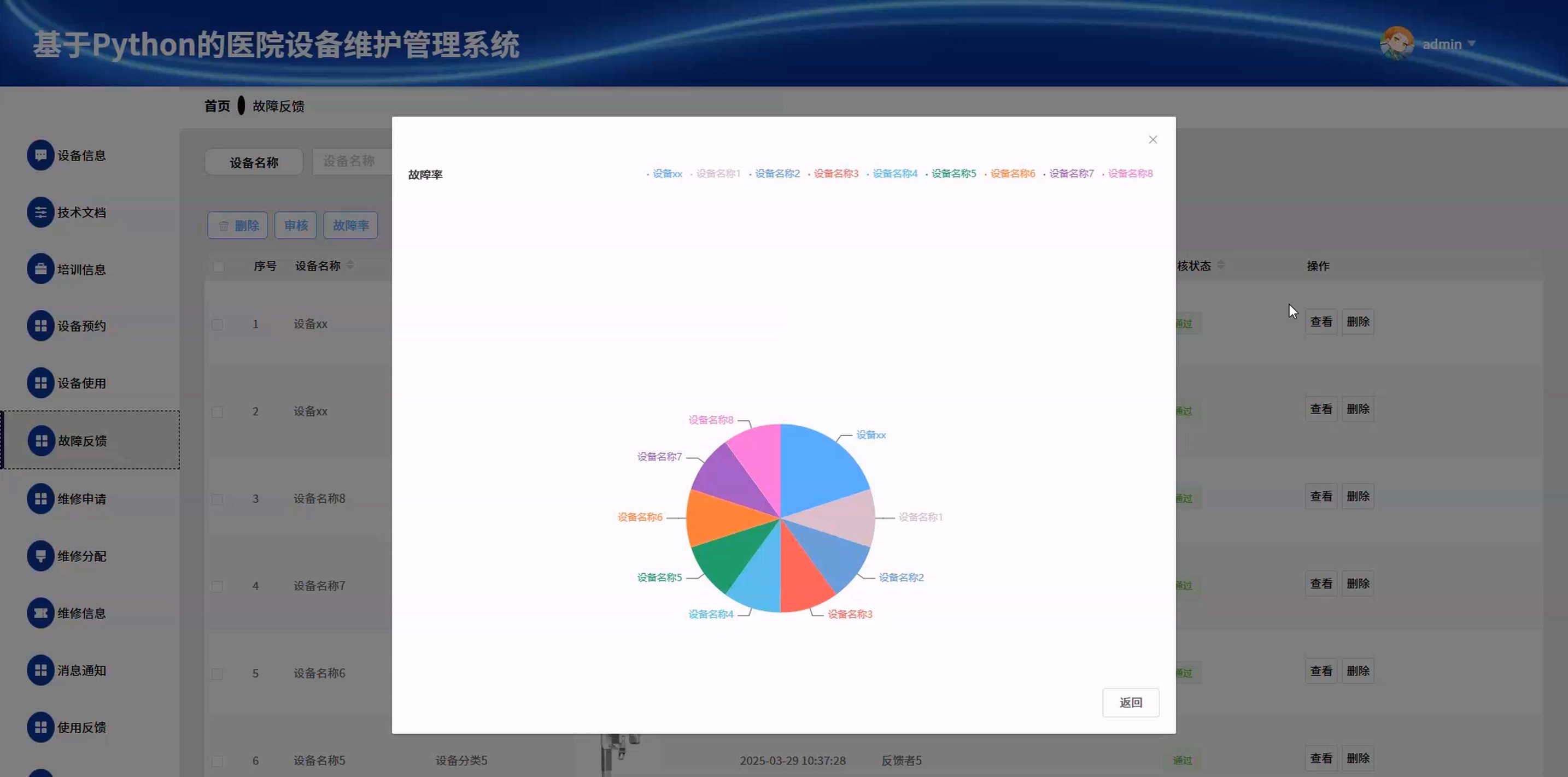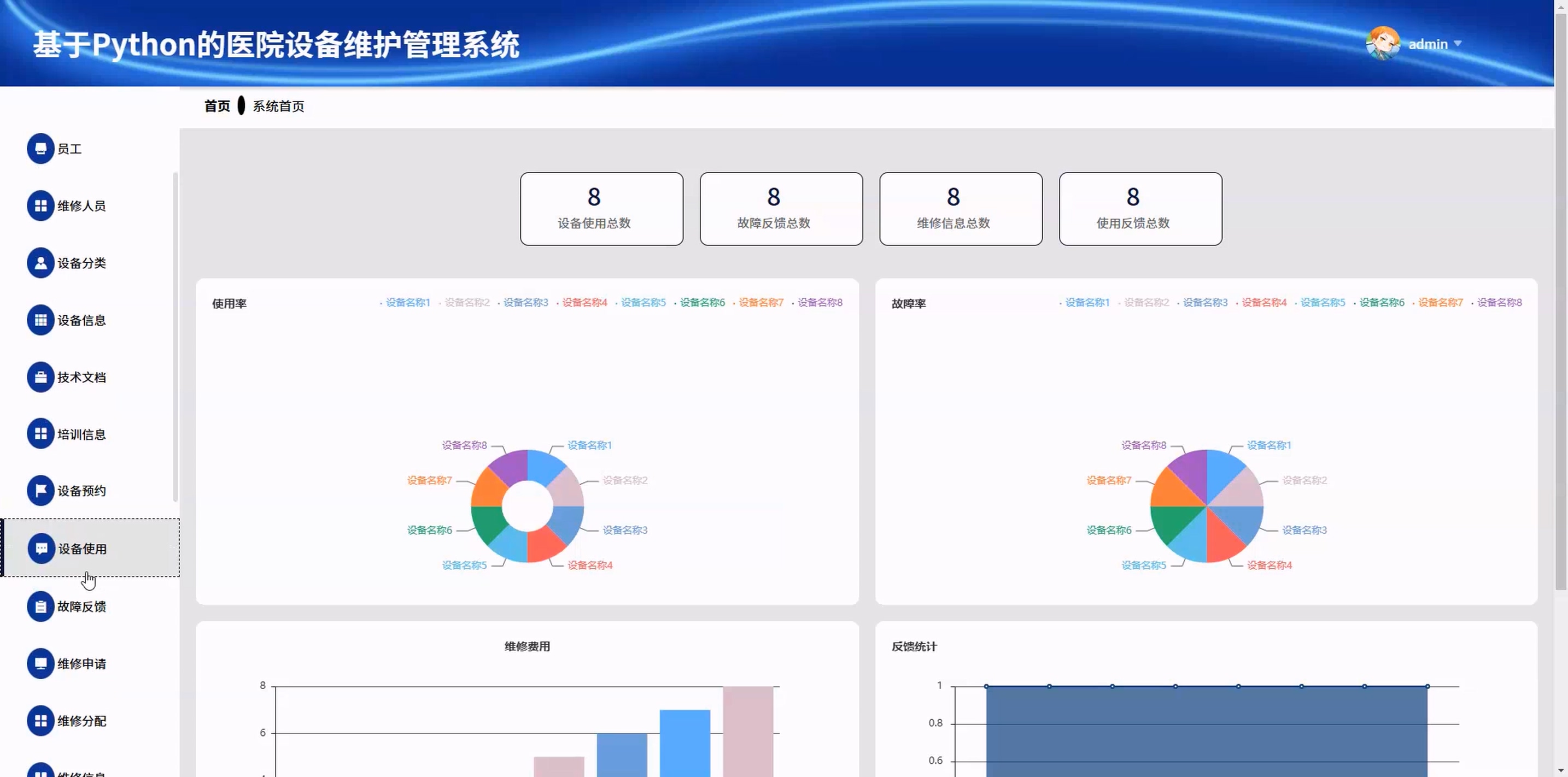 基于Python的医院设备维护管理系统分为前台员工模块、后台员工模块、后台管理员模块、后台维修人员模块四个层级,具体功能如下: