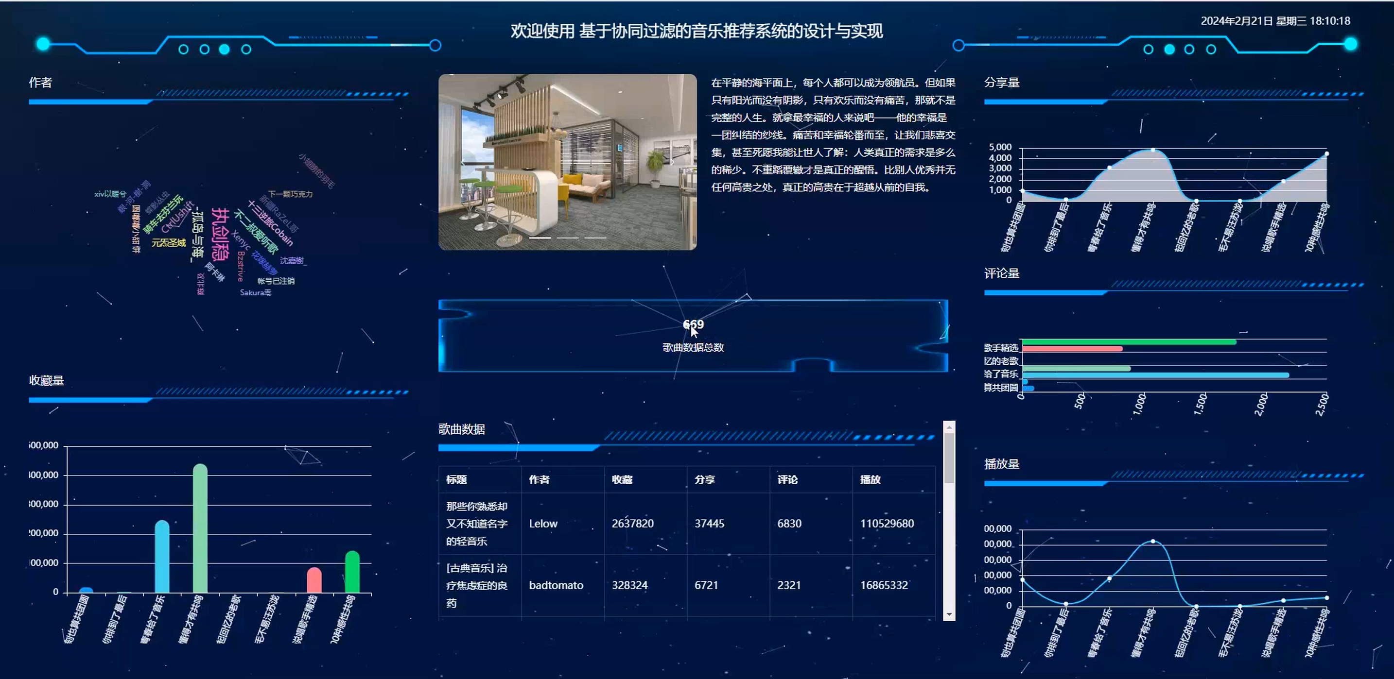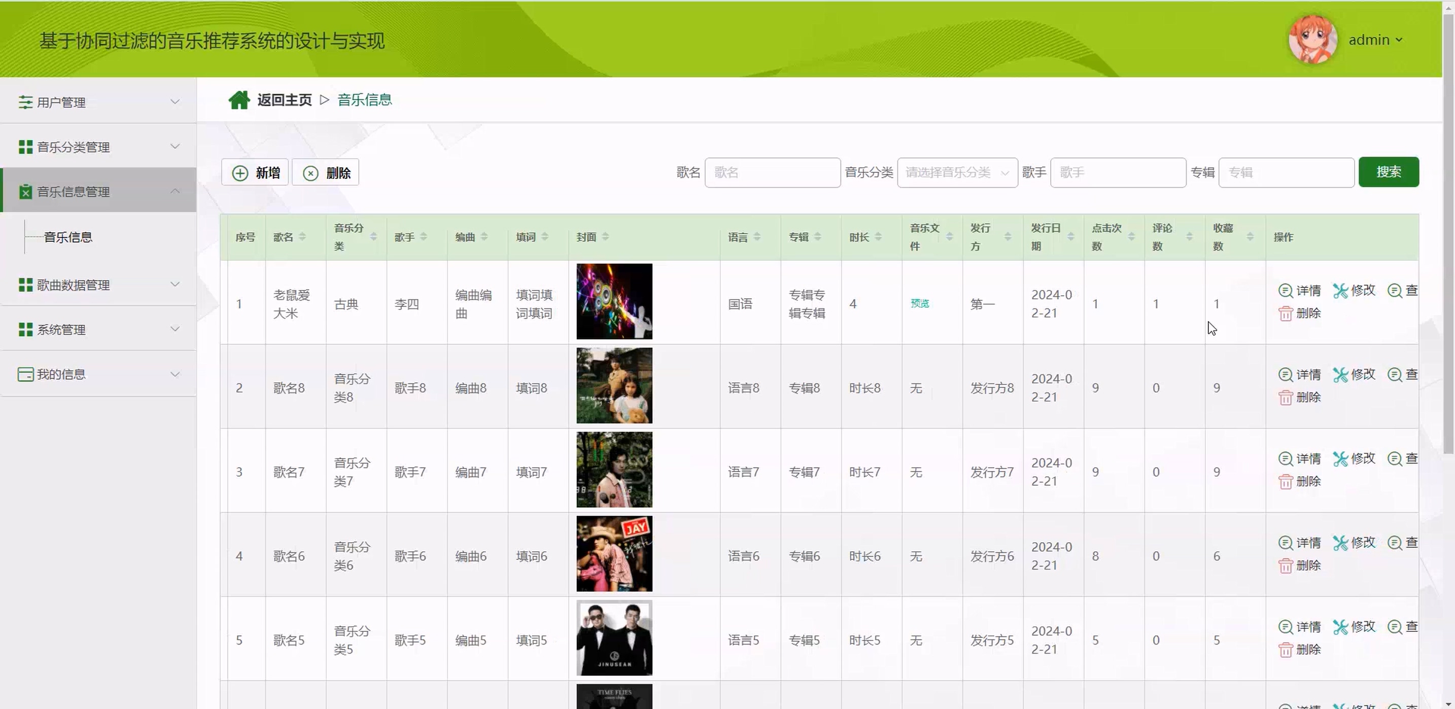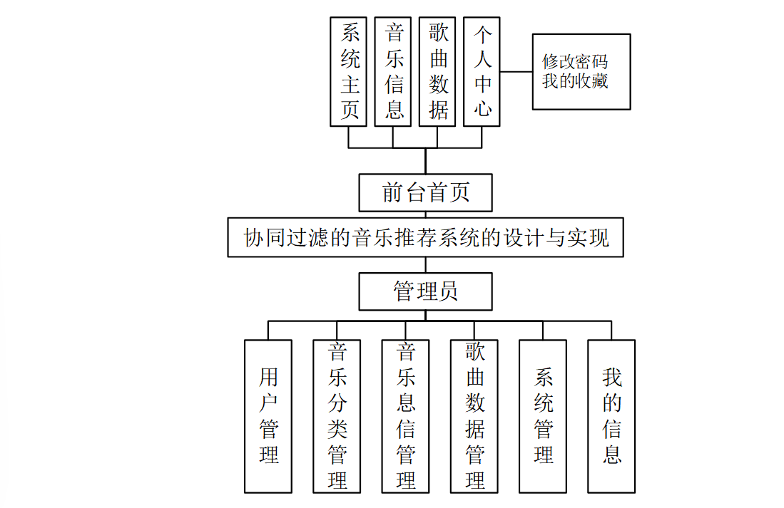 基于Python的协同过滤的音乐推荐系统分为前台首页及管理员模块,具体功能如下: