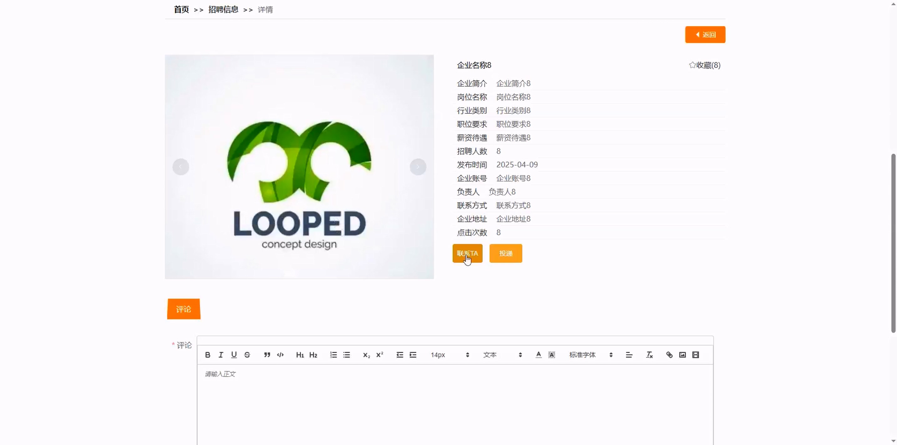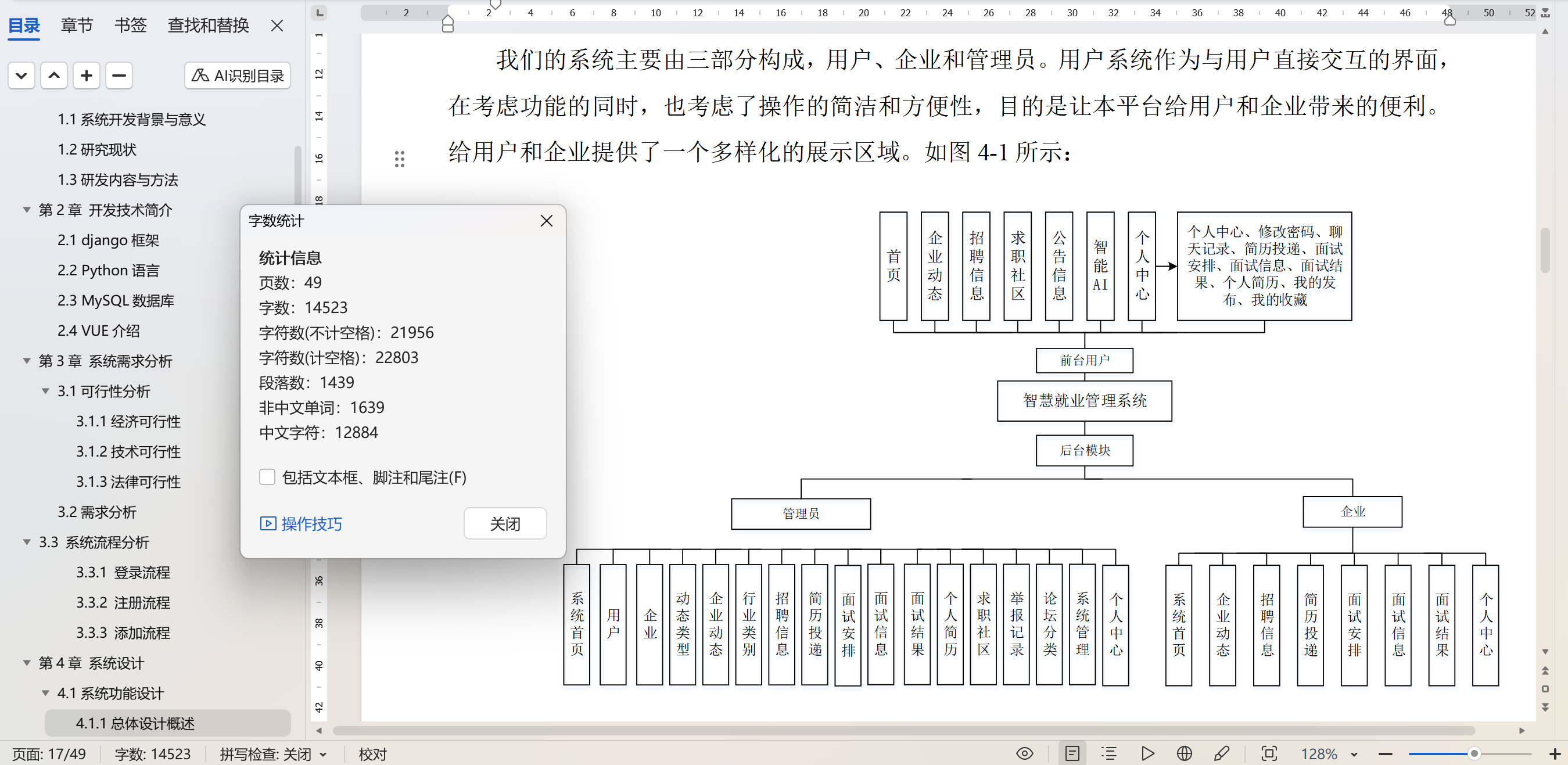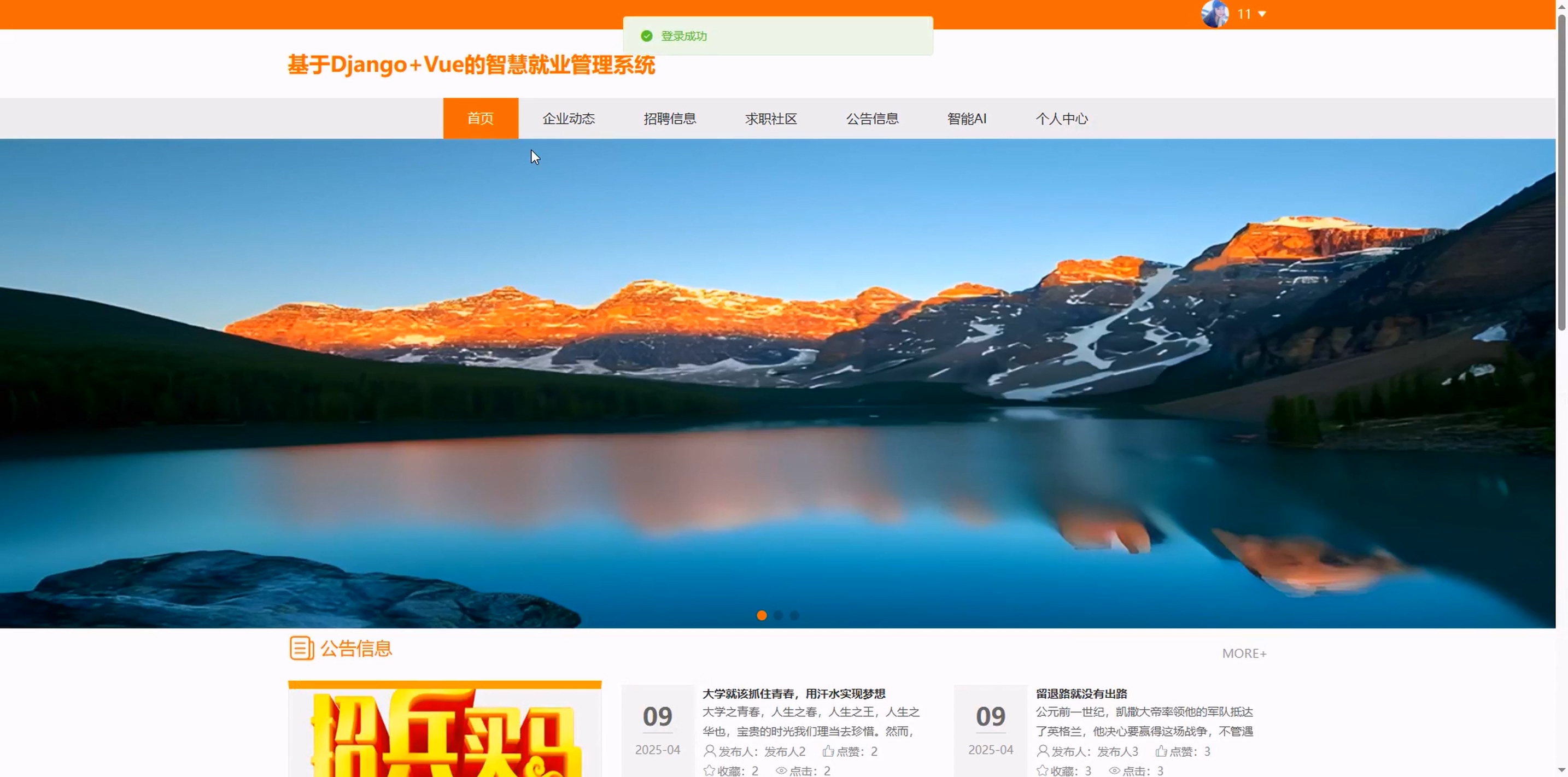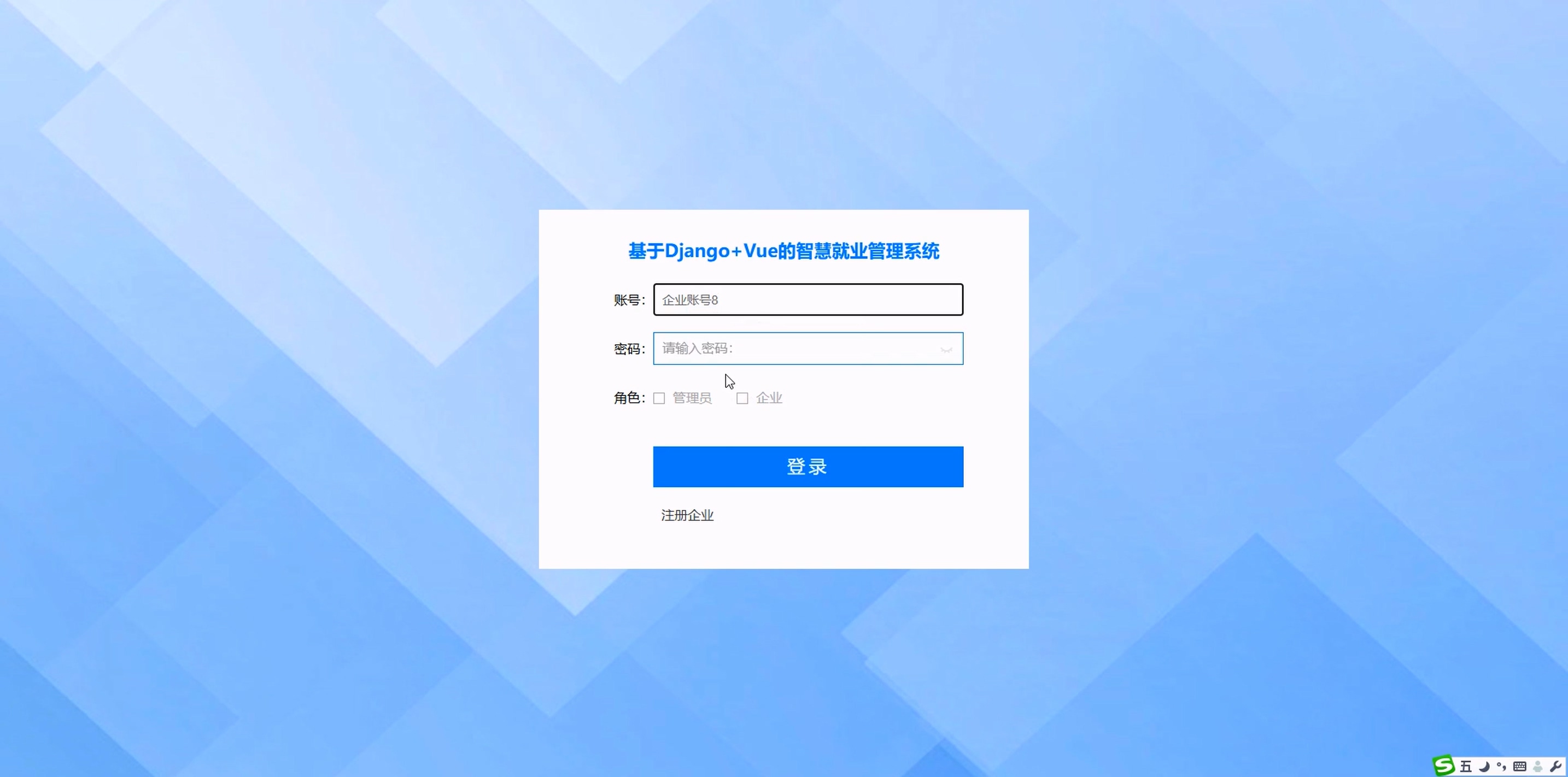 (协同算法+AI智能助手) 基于Python的智慧就业管理系统分为前台用户、后台模块(管理员、企业)两个层级,具体功能如下: