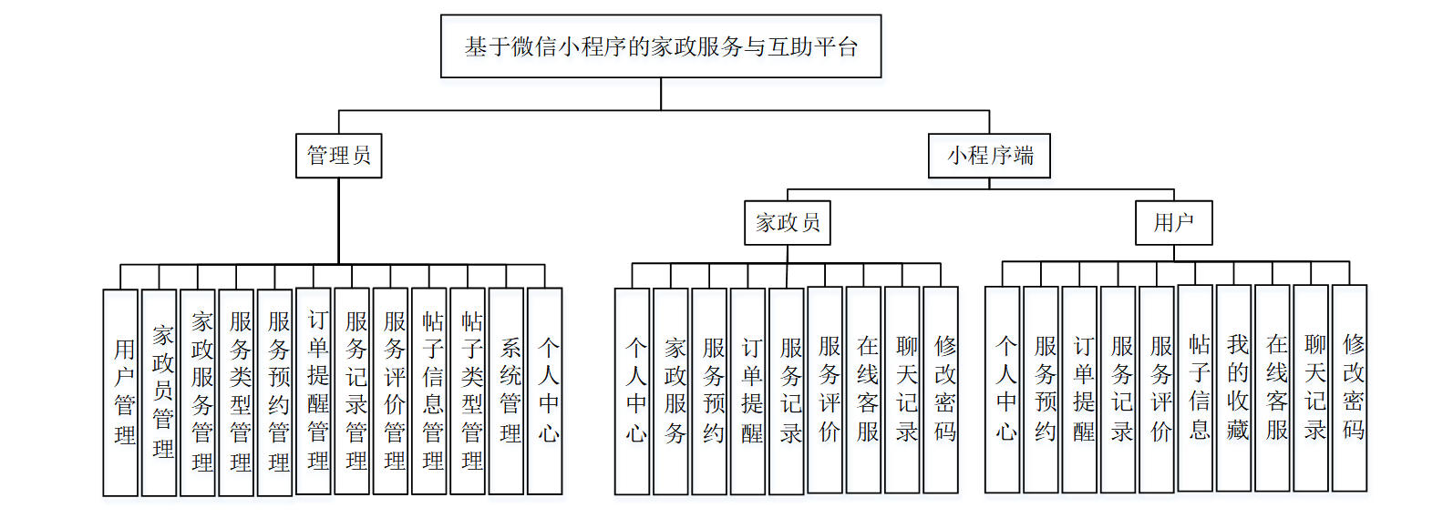 该基于微信小程序的家政服务与互助平台功能涵盖: