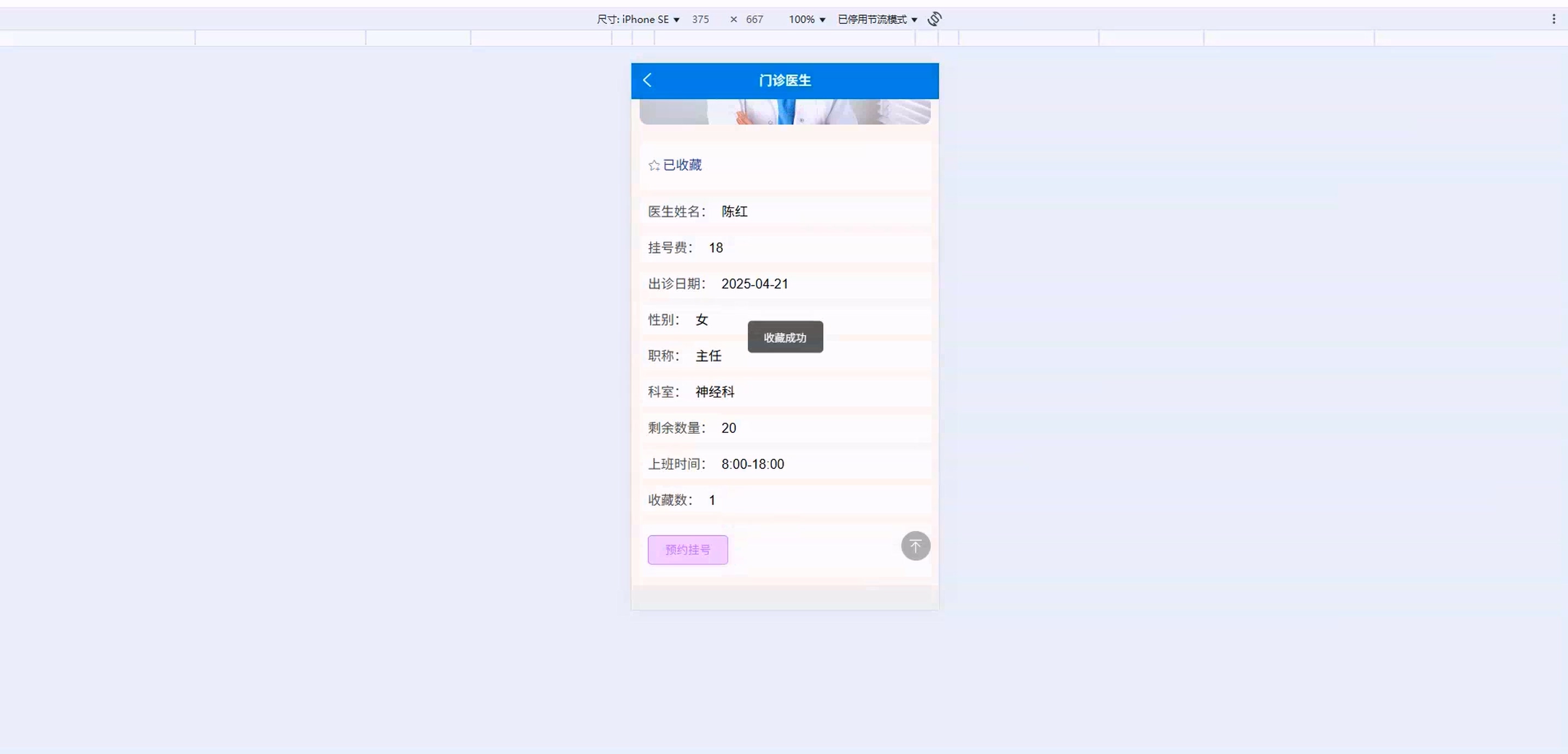 (3)医生:个人中心、门诊医生、预约挂号、取消预约、病历信息